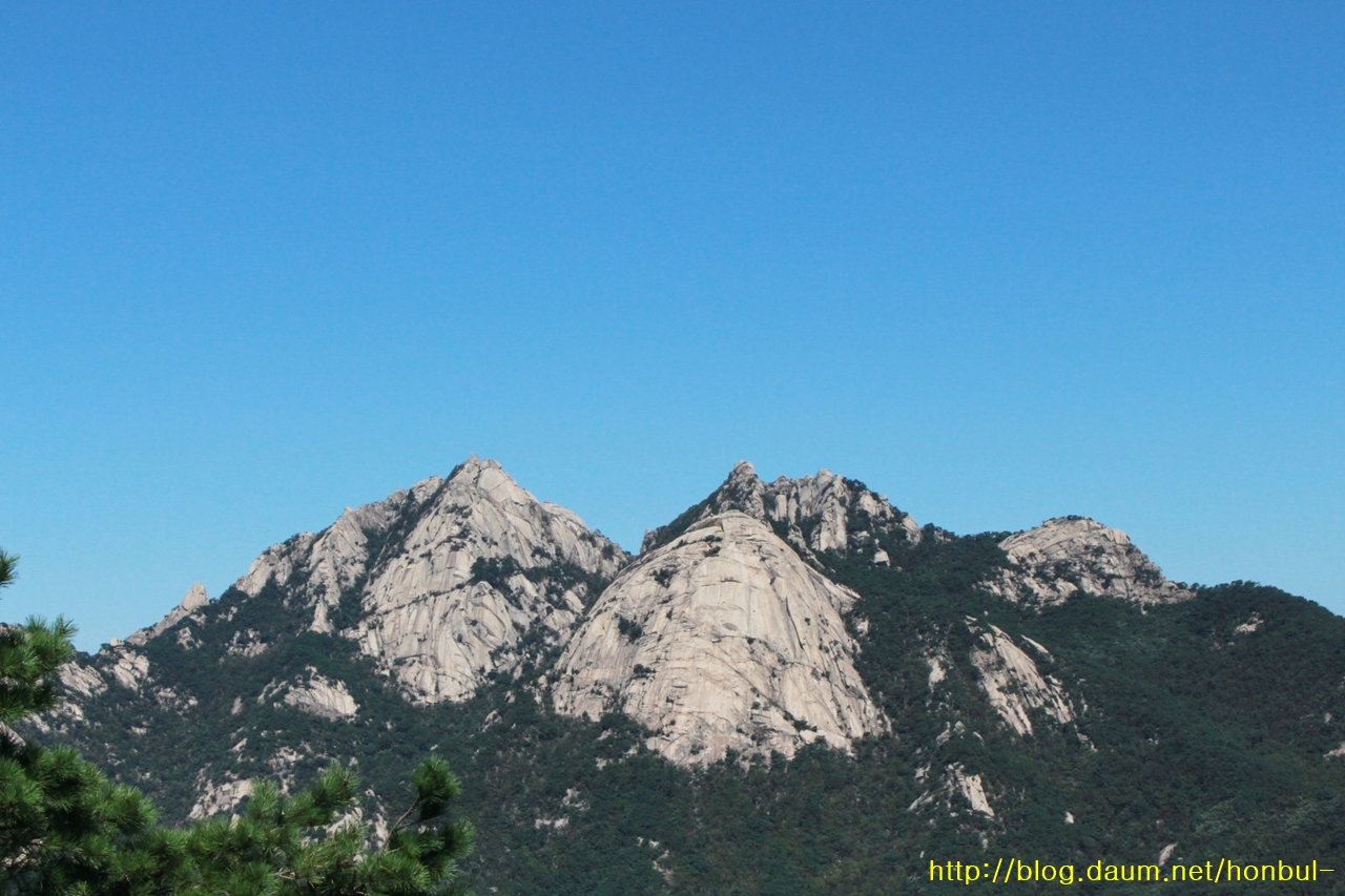오른쪽 뒤로 원효봉이 큰 암봉을 내보인다.