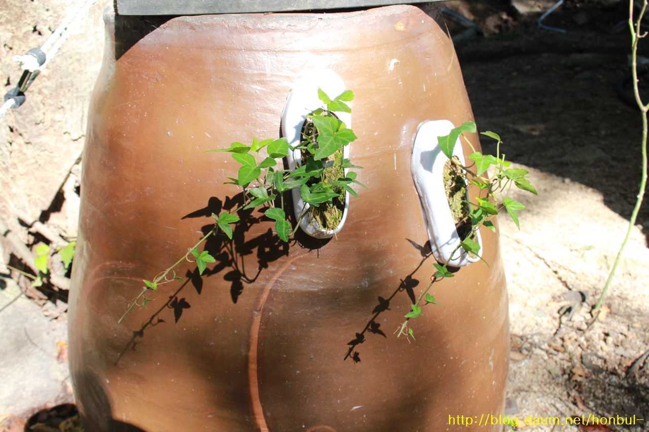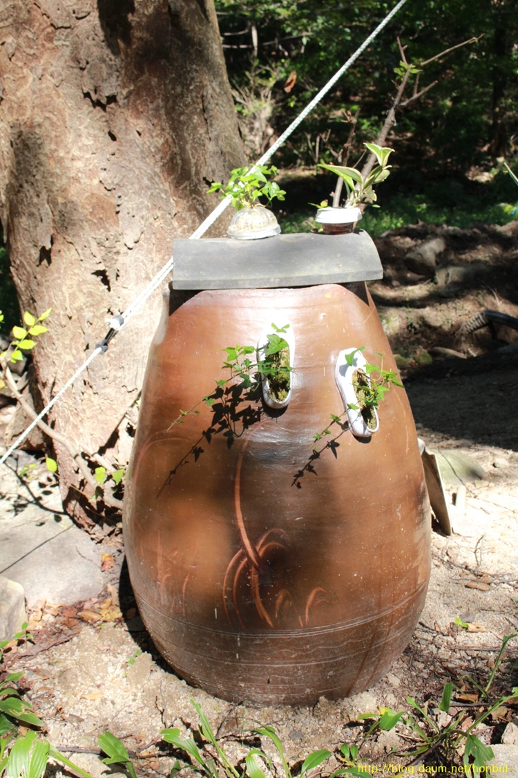중흥사에서 운영하는 작은 카페 앞 장독대를 화분으로 이용했다.