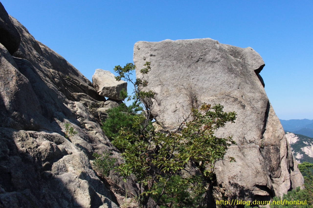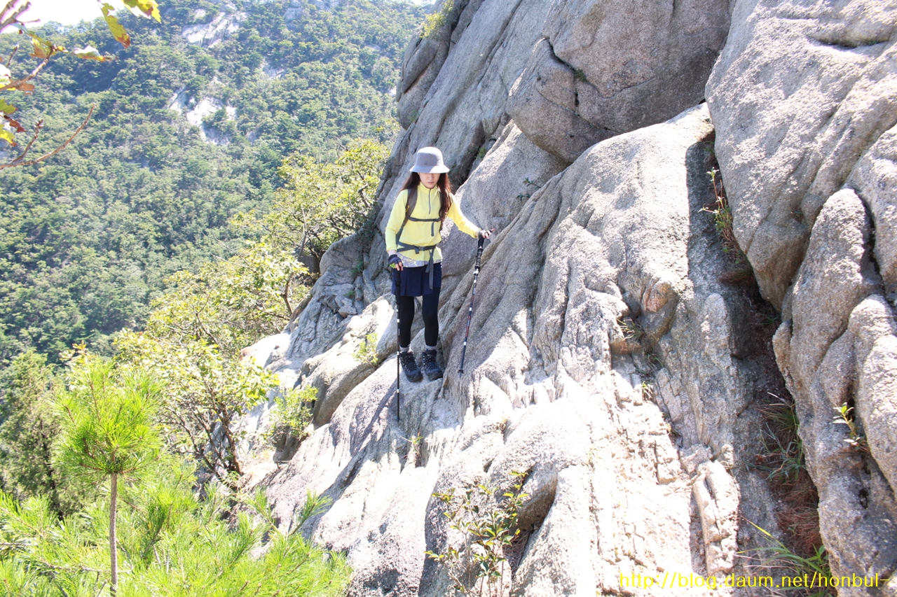 가파른 경사 대부분이 바위이기에 무릎에 많은 부담을 준다.