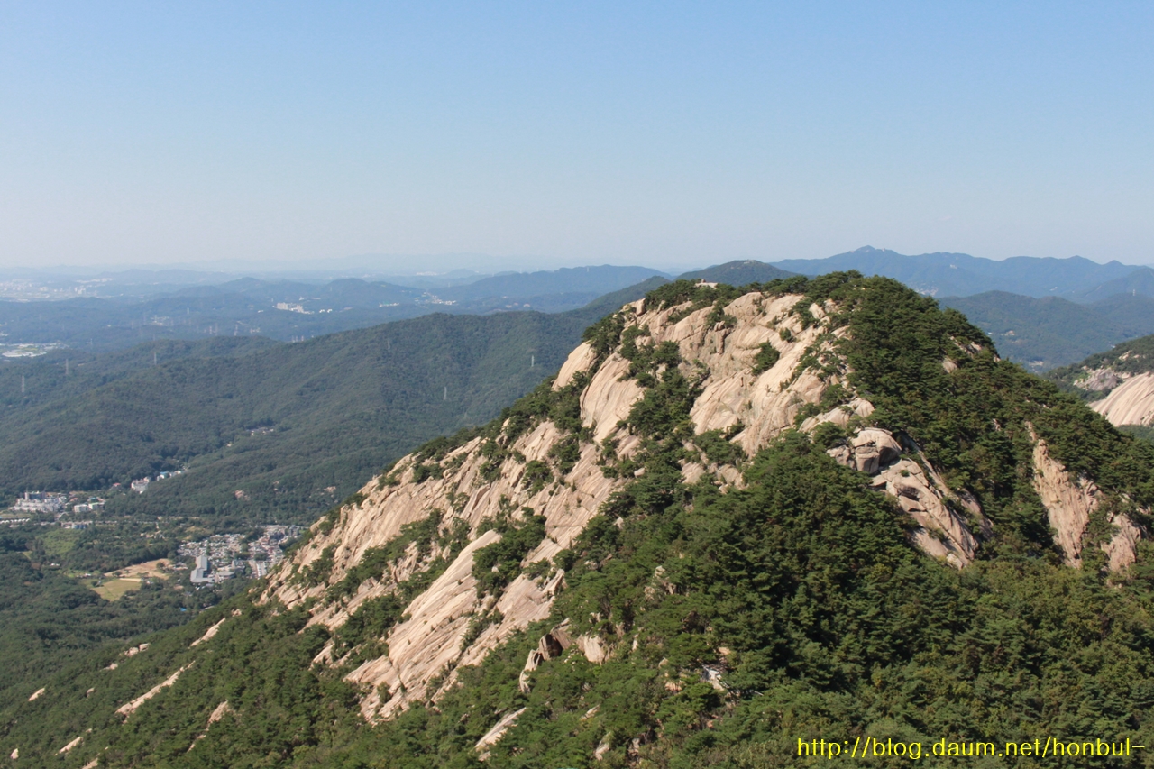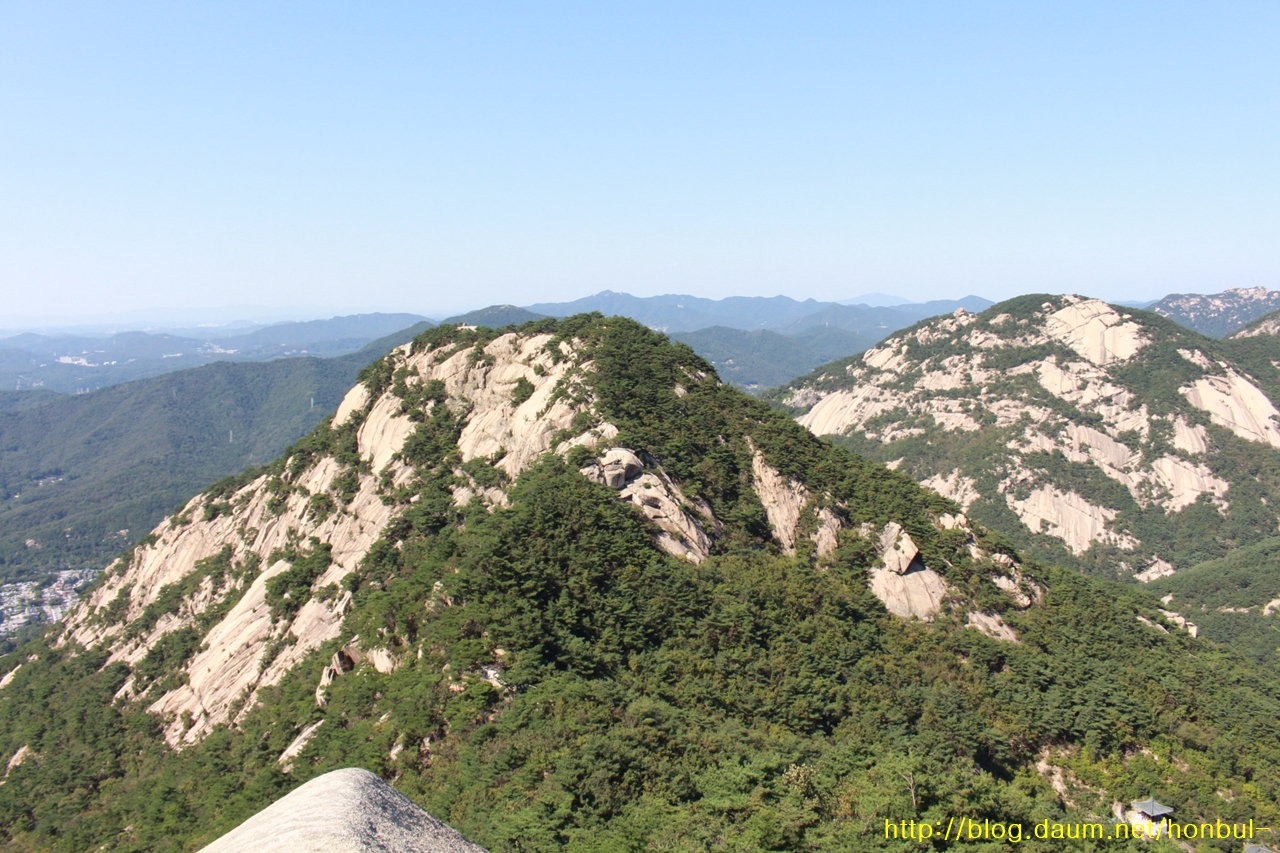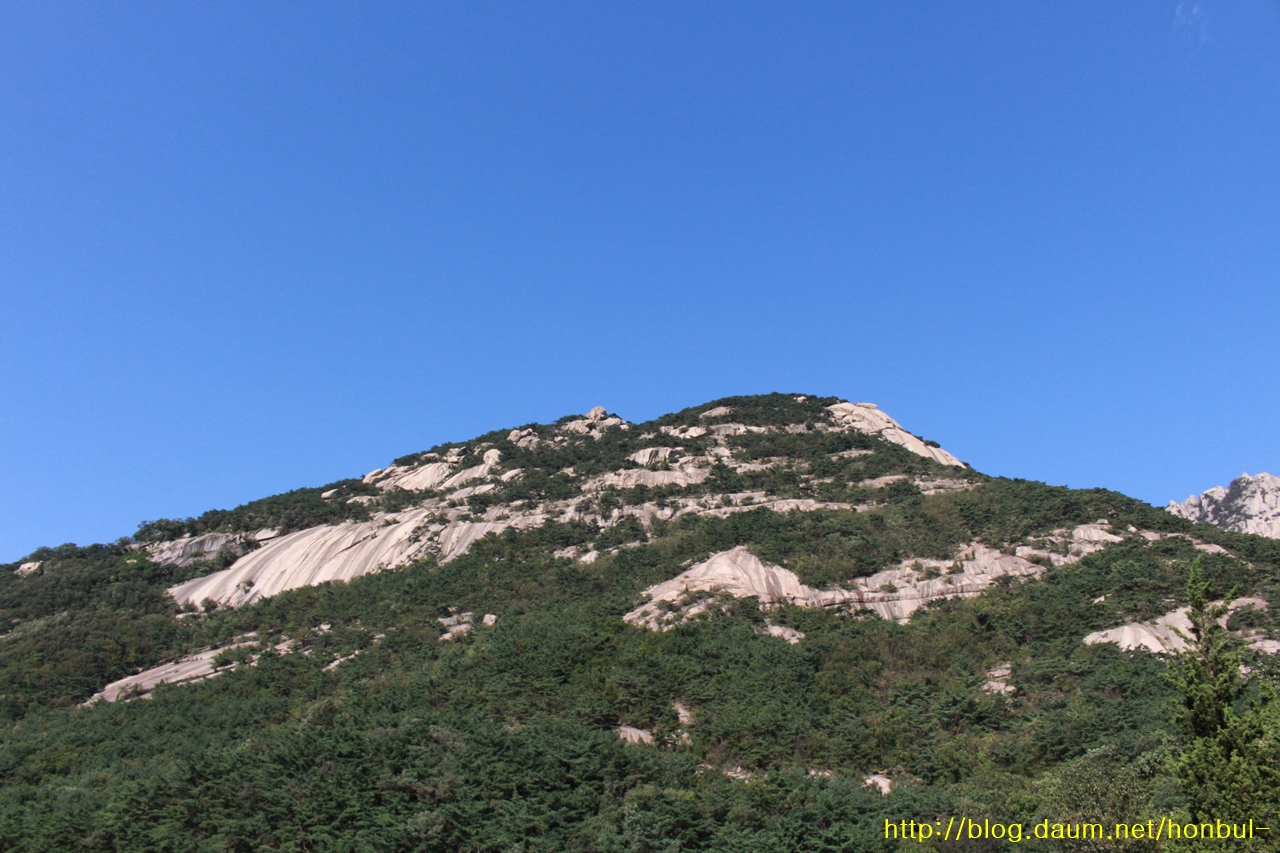 국녕사에서도 한참을 더 내려가며 지척인 염초봉과 백운대를 잡는다.