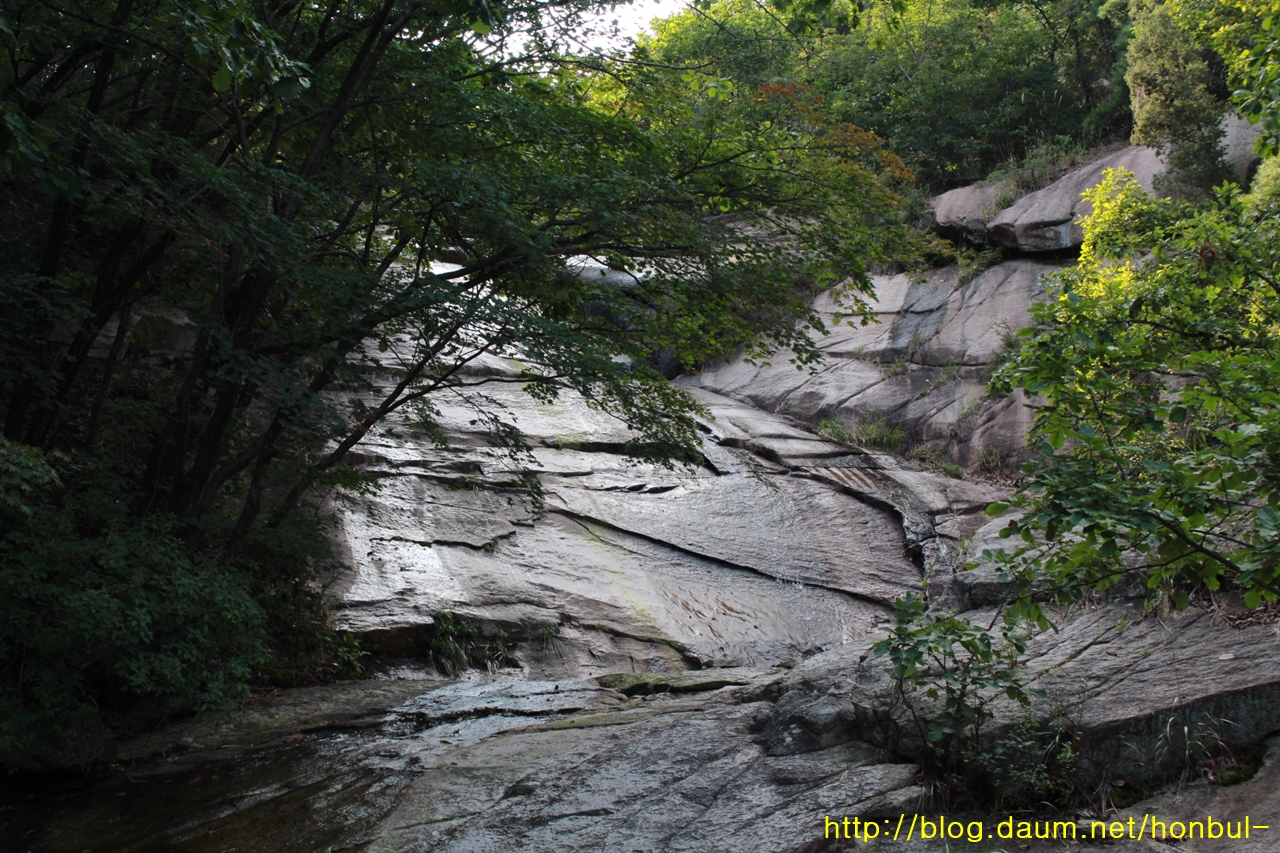 암반 위로 흐르는 개울물