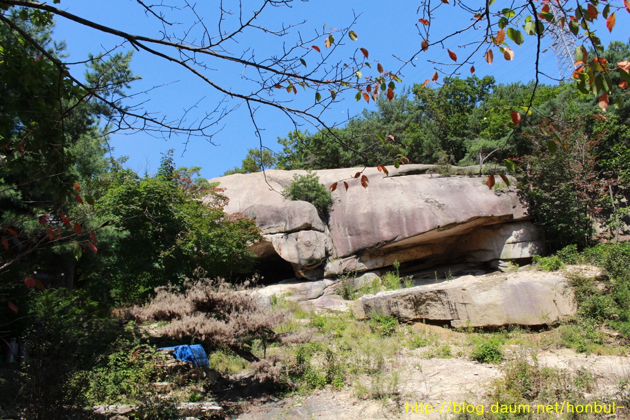 왼쪽에 있는 굴은 예전에 기도터로 쓰인 흔적이 남아 있다.