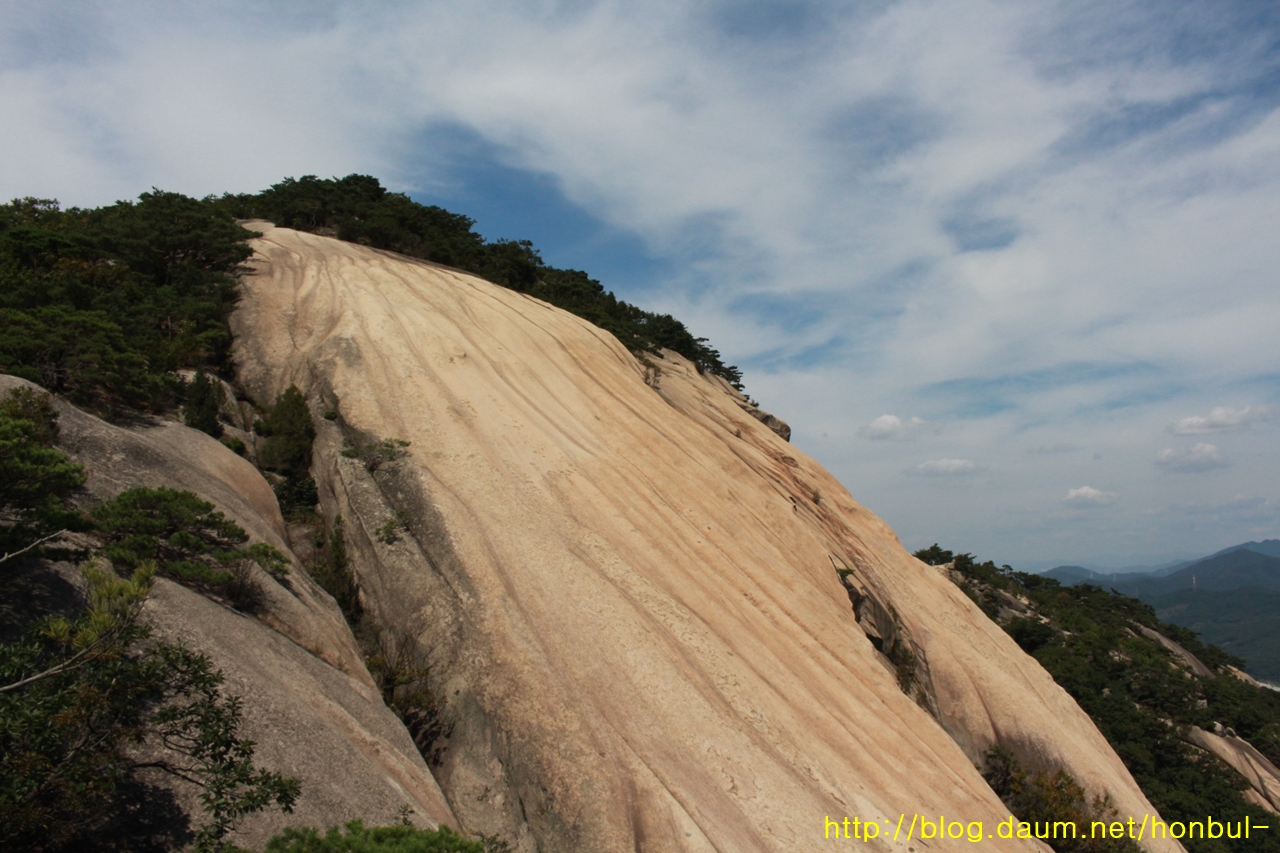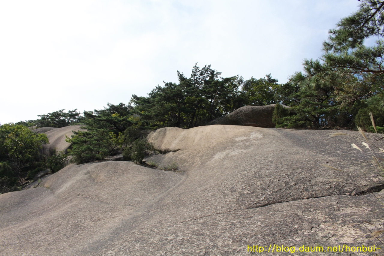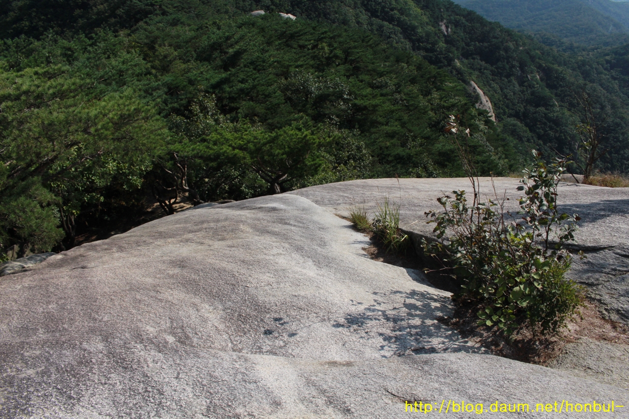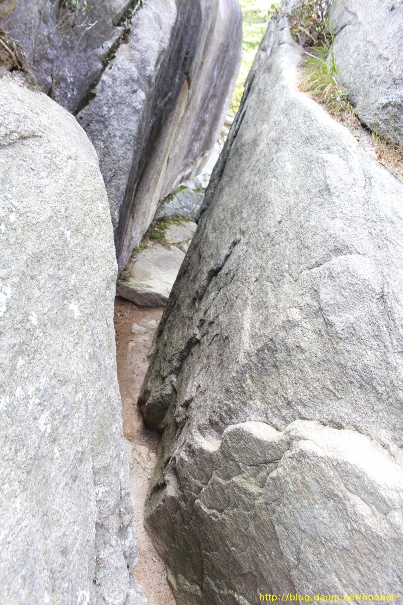 칠성대에서 약간 우회하여 올라가야 하지만, 시간과 거리를 조금이라도 줄이려고 이 바위를 가로지른다.
