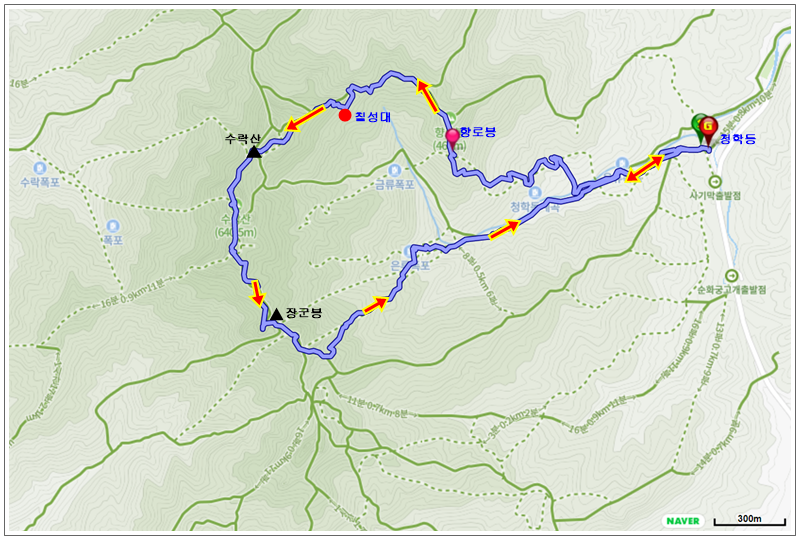 하산 구간은 구비구비 돌고 돌아 내원암 방향의 은류폭포로 하산하게 된다.