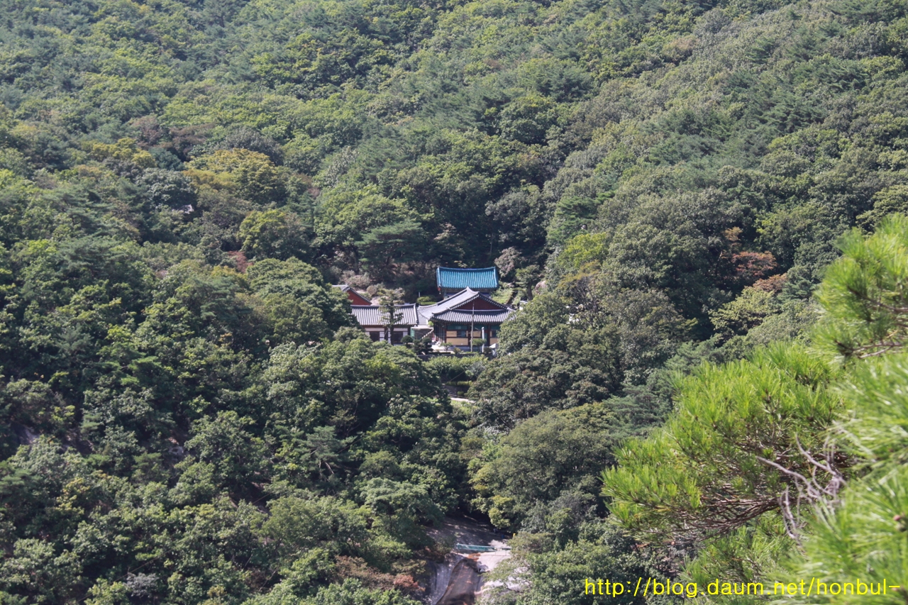 오른쪽 정상에 도정봉이 살짝 보이고, 더 오른쪽 바위는 미륵봉이다.