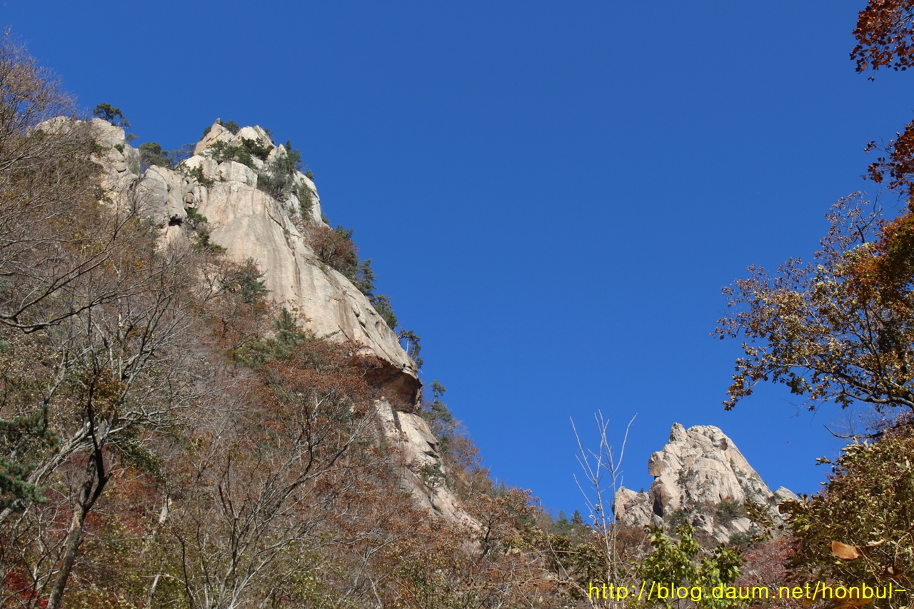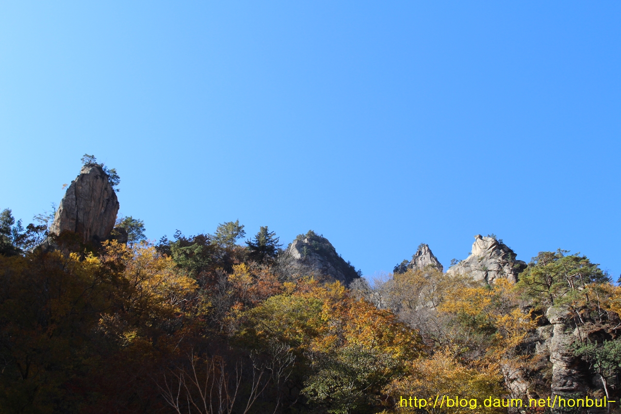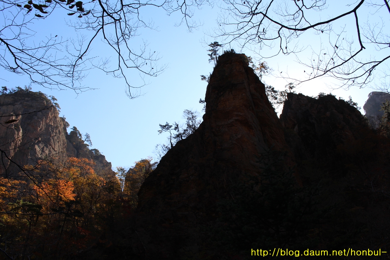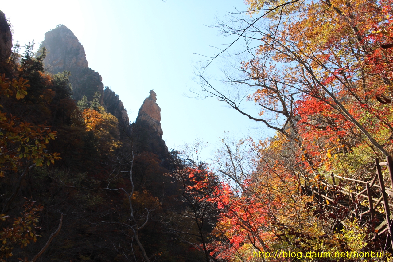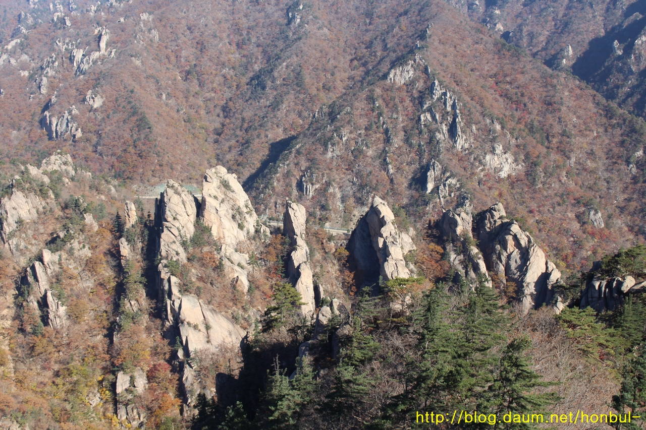 일주일 정도만 빨리 왔어도 저 만물상은 온통 붉은 단풍으로 불타고 있을 것인데, 조금 늦었다.