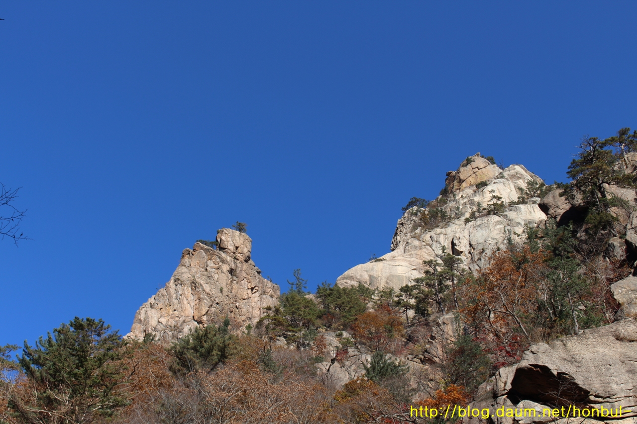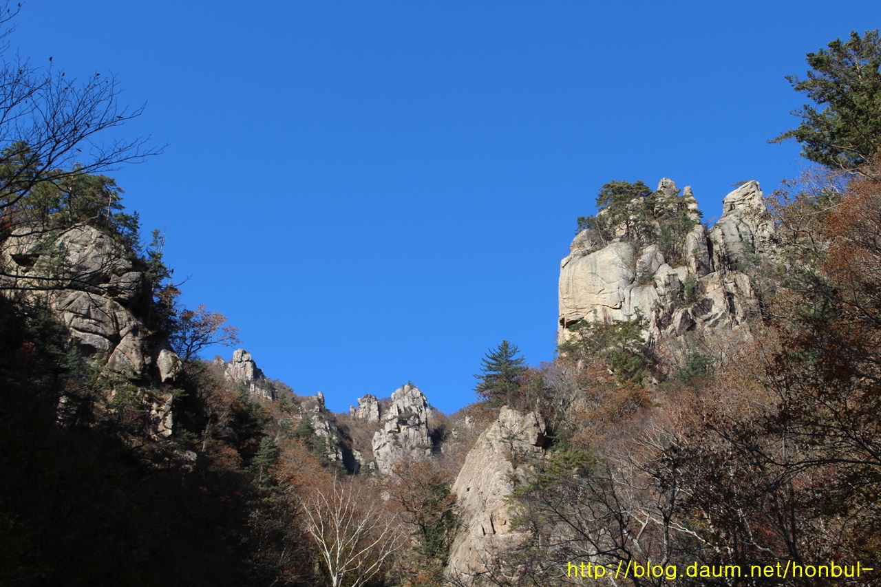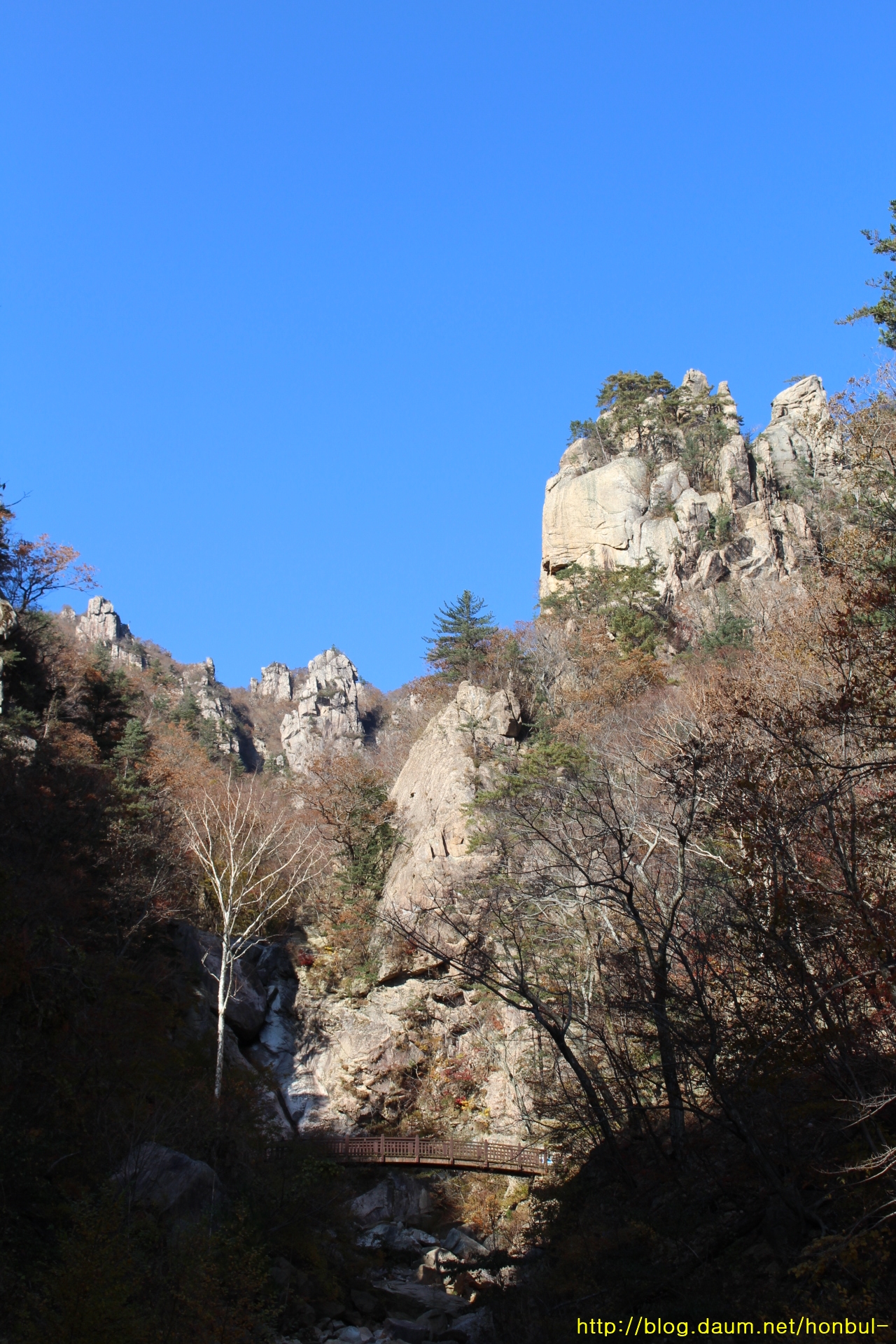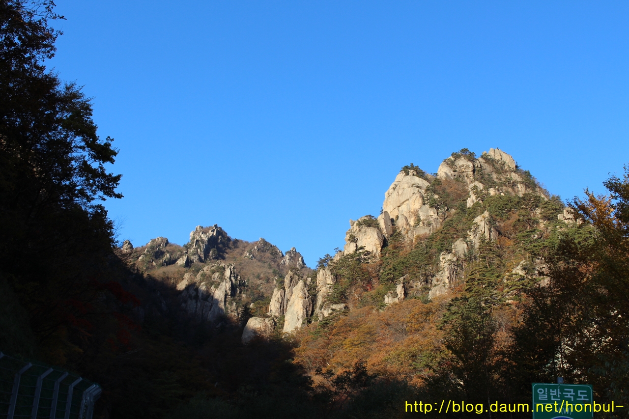 일주일 정도만 빨리 왔어도 저 만물상은 온통 붉은 단풍으로 불타고 있을 것인데, 조금 늦었다.