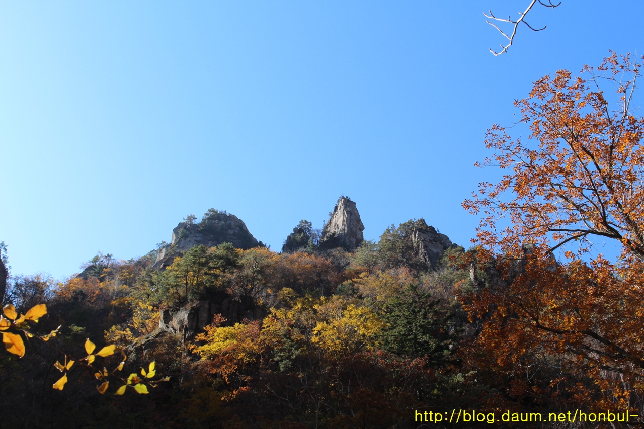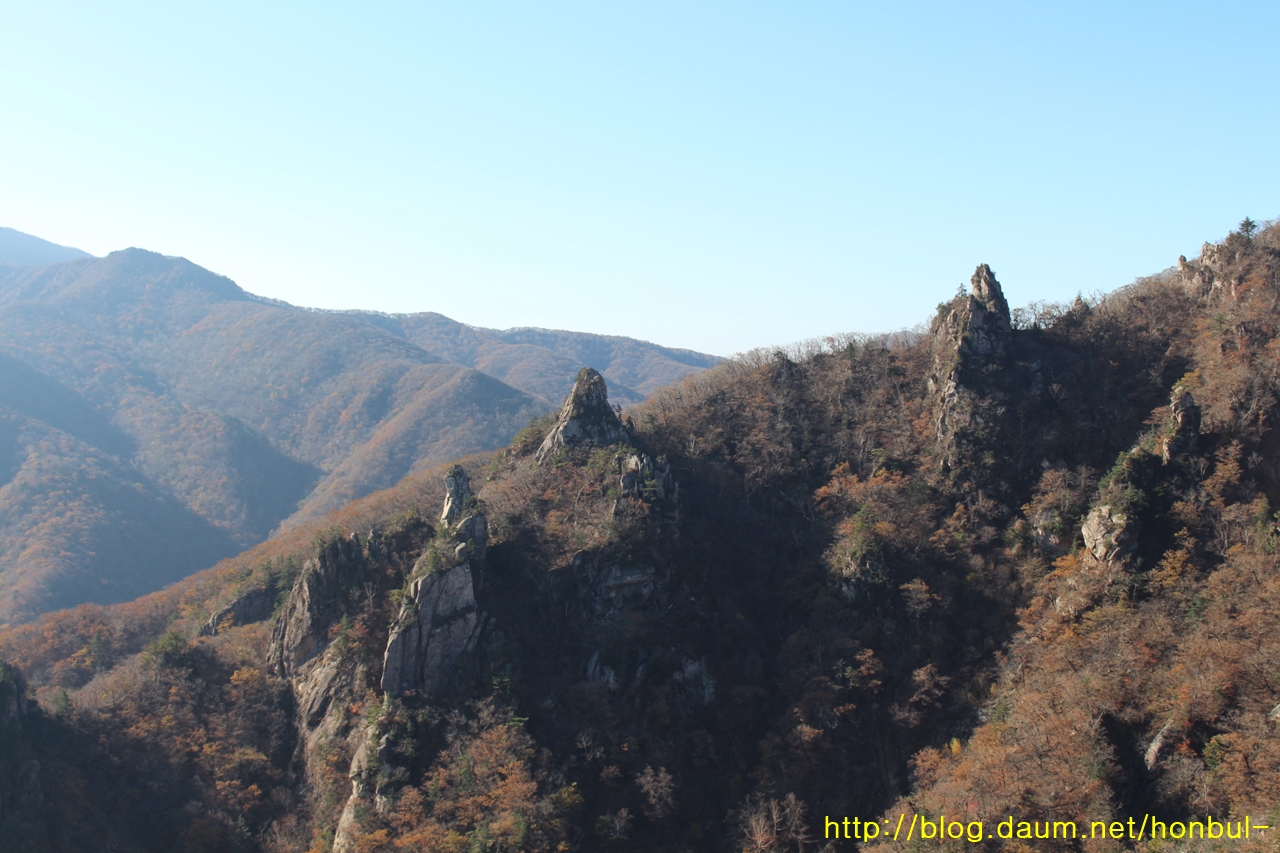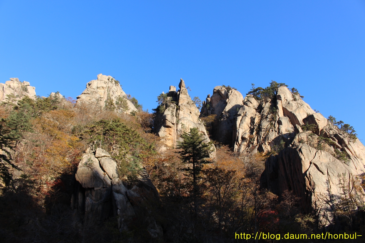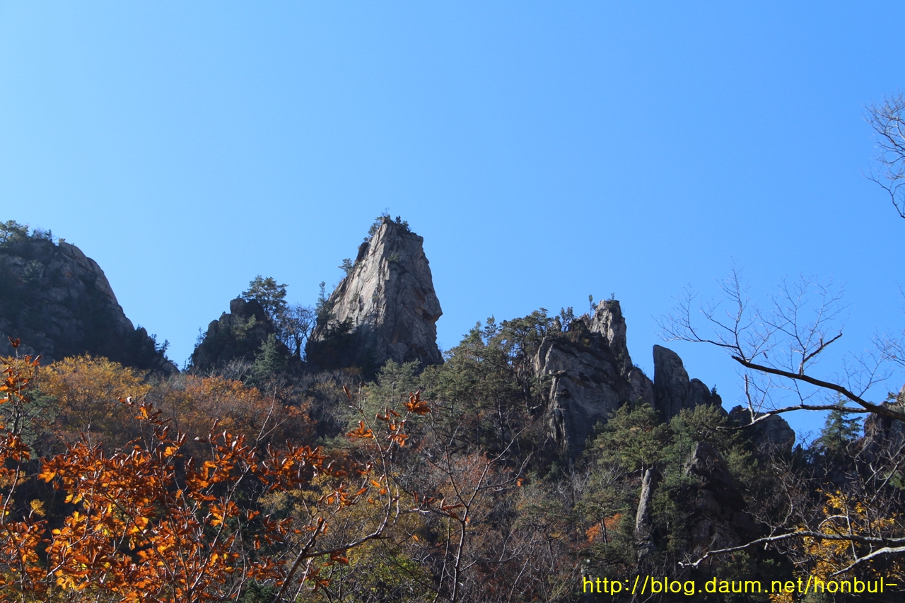 스카이라인과 만나는 암봉은 암봉대로 멋있고, 어디든 도처에 있는 단풍대로 멋지다.