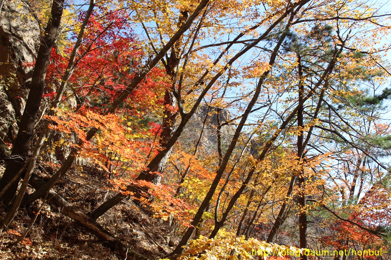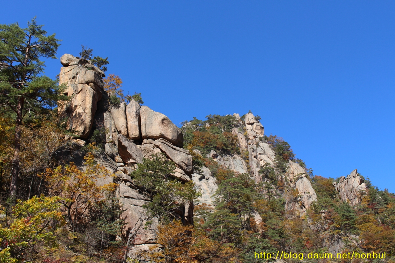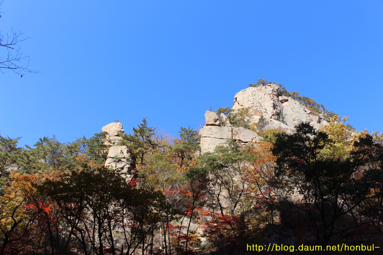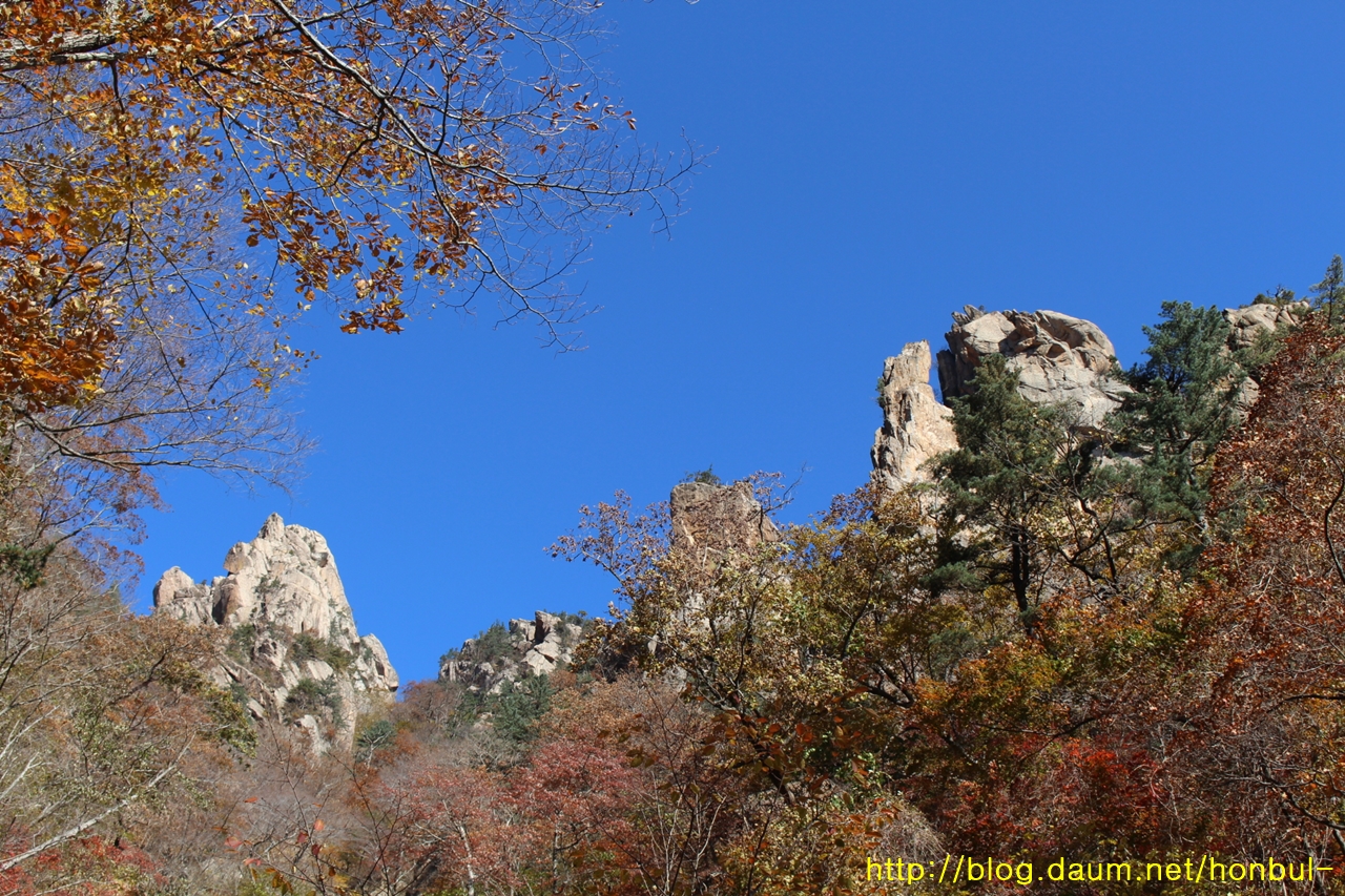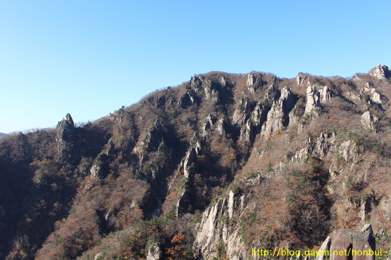 스카이라인과 만나는 암봉은 암봉대로 멋있고, 어디든 도처에 있는 단풍대로 멋지다.