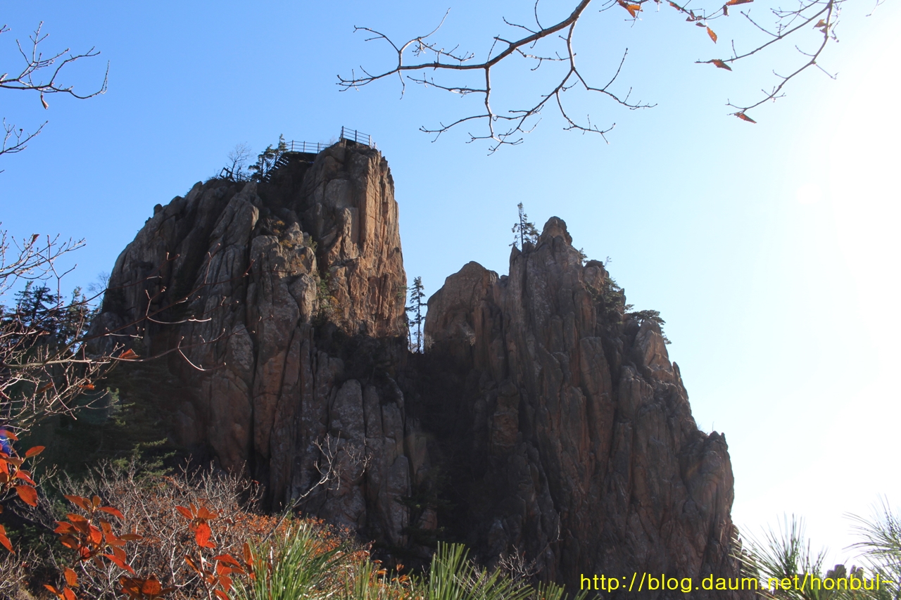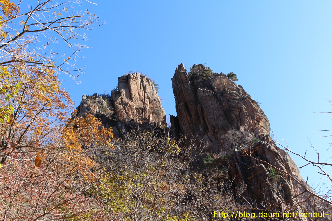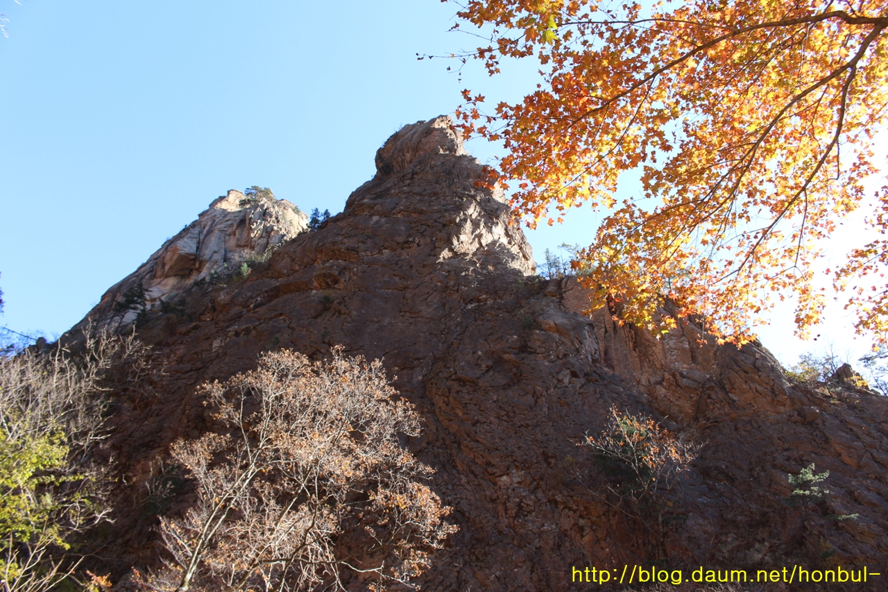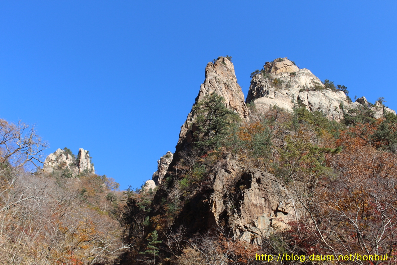 스카이라인과 만나는 암봉은 암봉대로 멋있고, 어디든 도처에 있는 단풍대로 멋지다.
