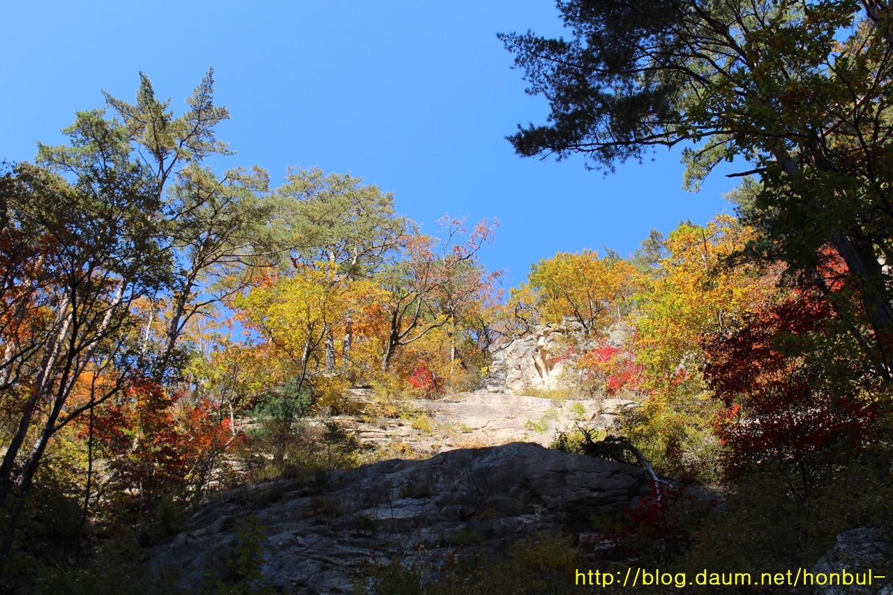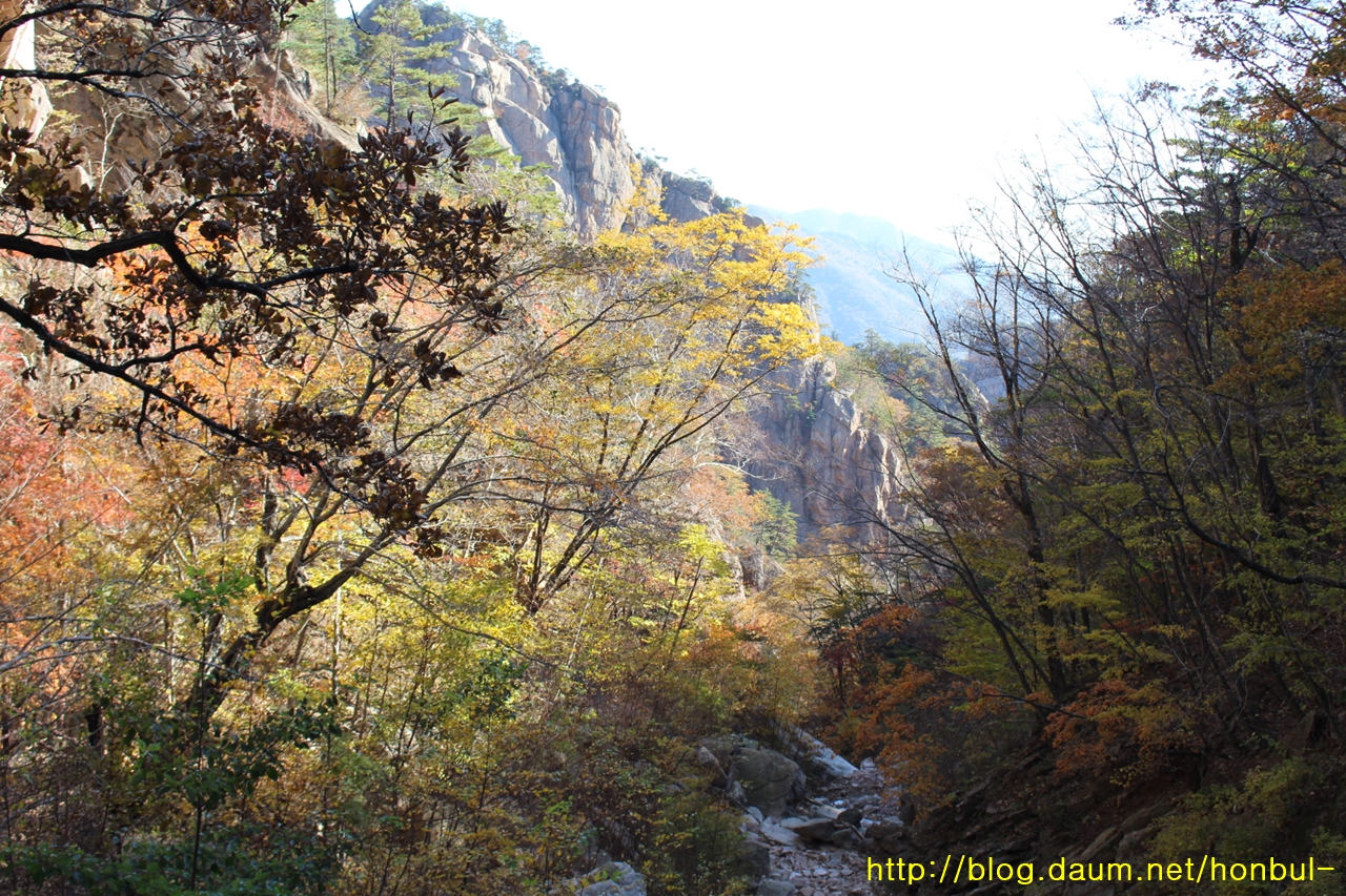 흘림골 입구인 여심폭포 주변의 단풍은 별로이더니 주전골과 가까운 골짜기는 단풍에 가득하다.