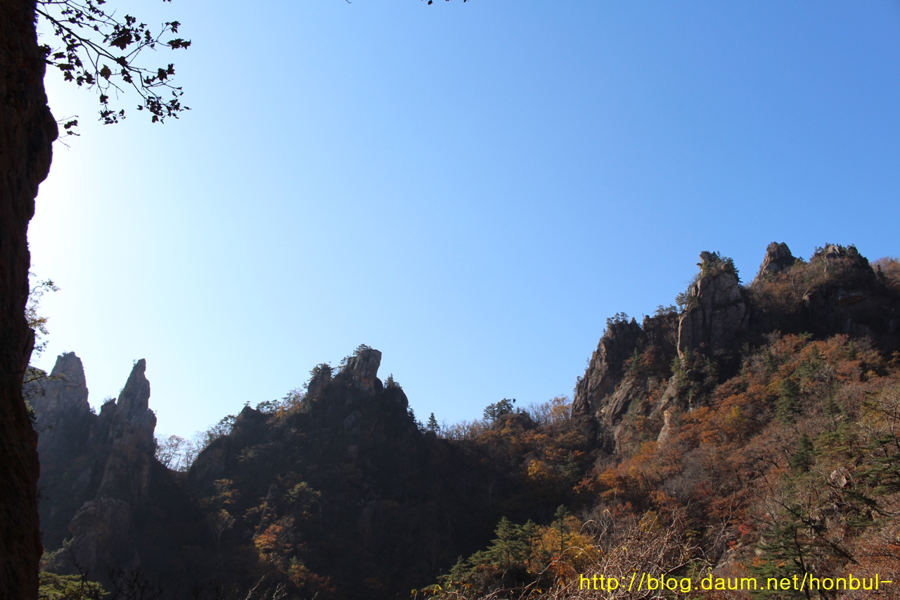 등선봉에서 주전골로 내려가며 우측 봉우리는 역광이 대부분이다.
