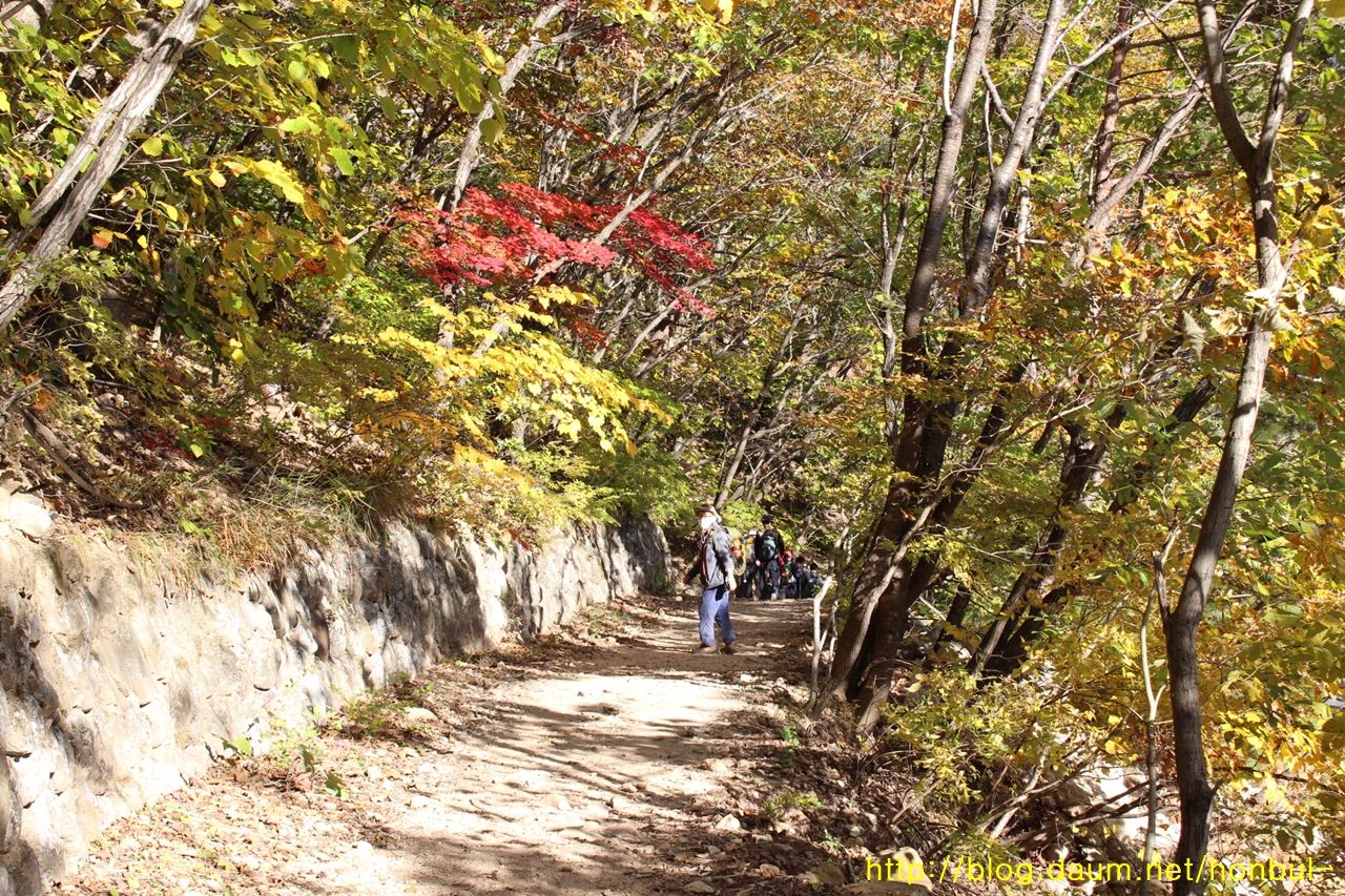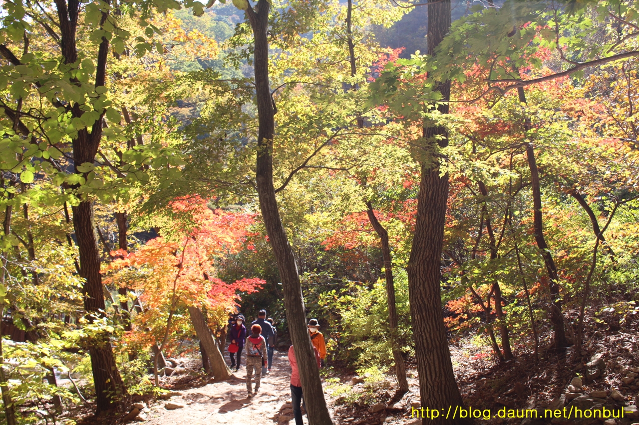 불과 한 시간이면 충분할 만큼 쉬운 코스인 데다 단풍 명소이기에 탐방객이 꽉 찬 느낌이다.