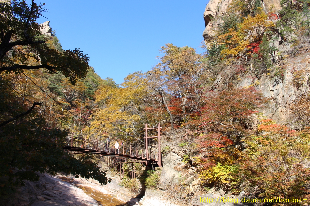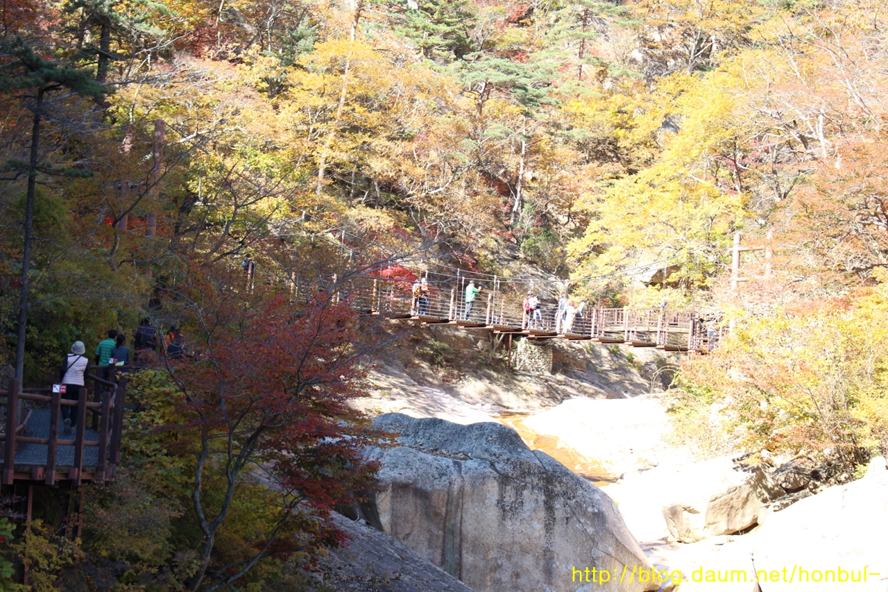 주전골 단풍과 암봉, 다리가 잘 어우러지는 최고의 명소이다.