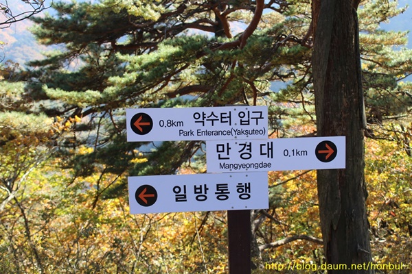 만경대는 일방통행만 허용되는데, 주전골 탐방지원센터가 들머리이므로 다시 올라가야 한다.