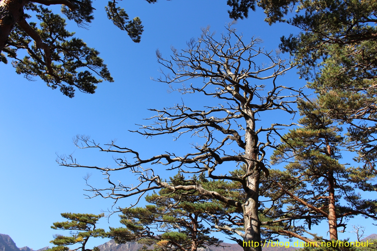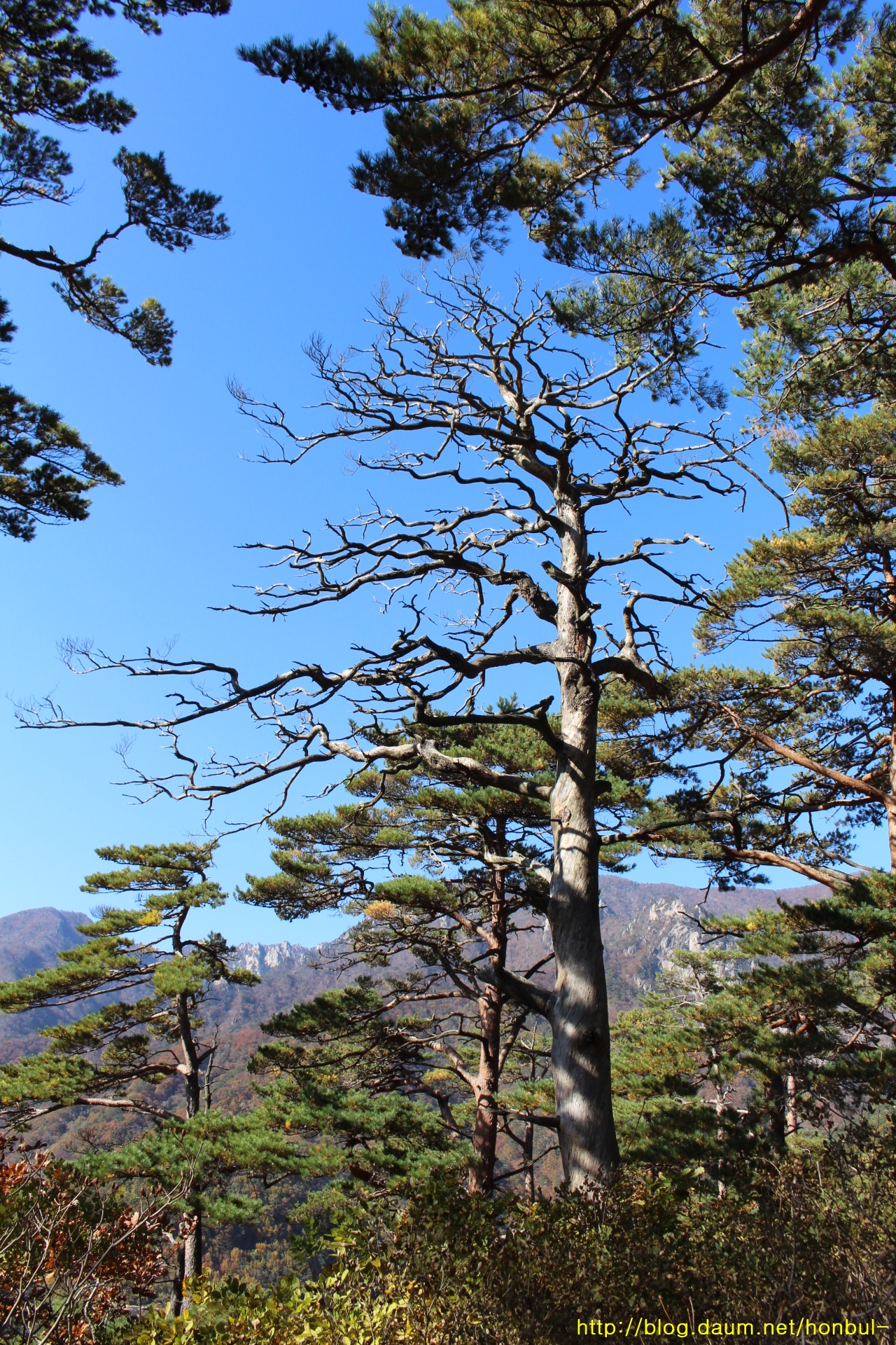 죽은 노송 고사목이 산 노송보다 더 눈길을 받는다.