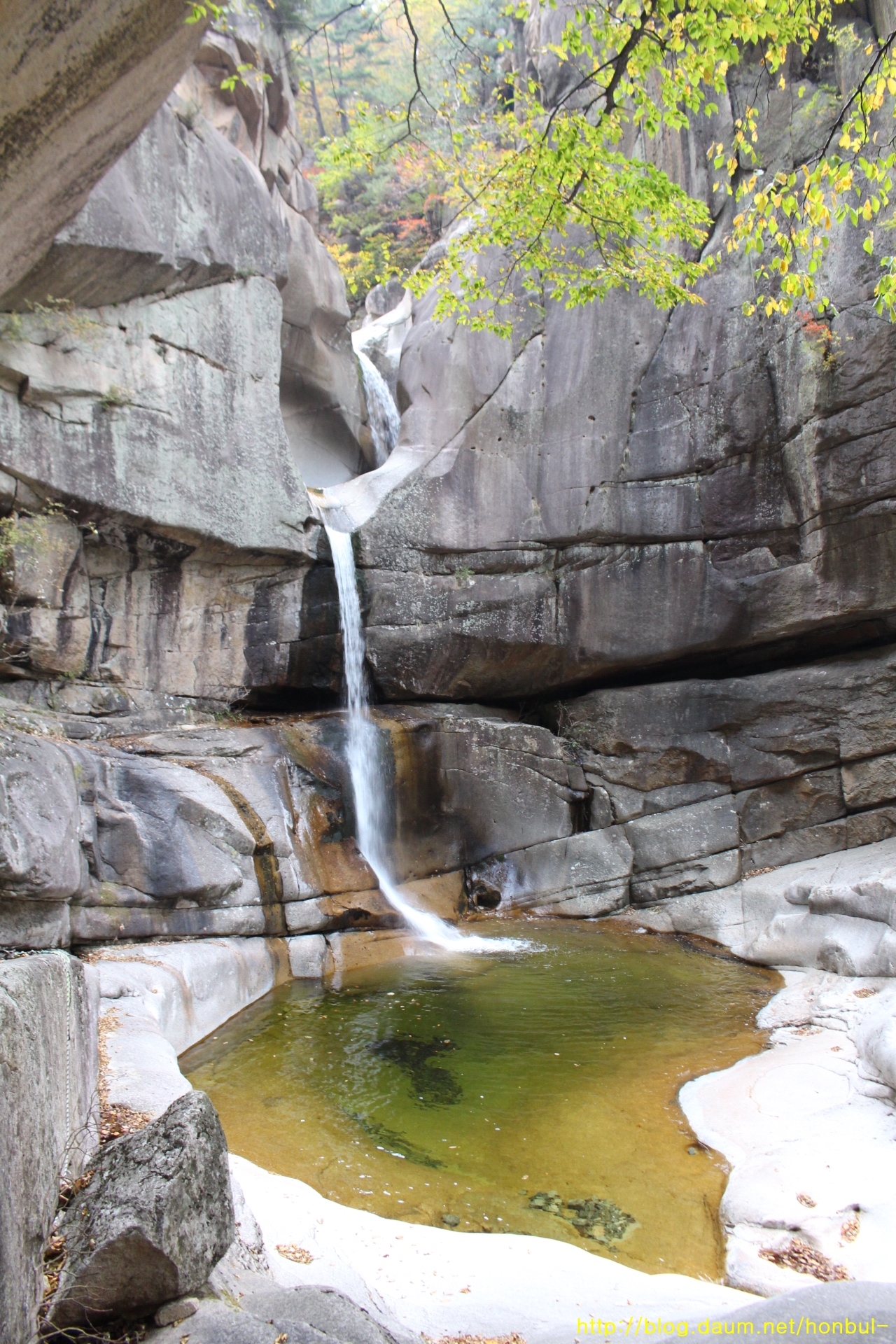 바위가 철분이 많은지 물이 담긴 곳에 붉은 녹이 가득하고 안쪽엔 낙엽이 쌓여 범상치 않은 기운을 풍긴다.
