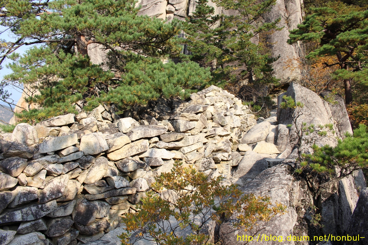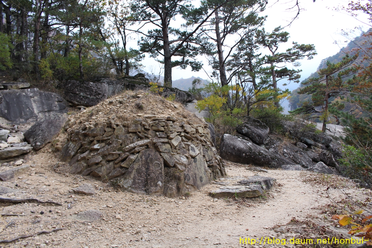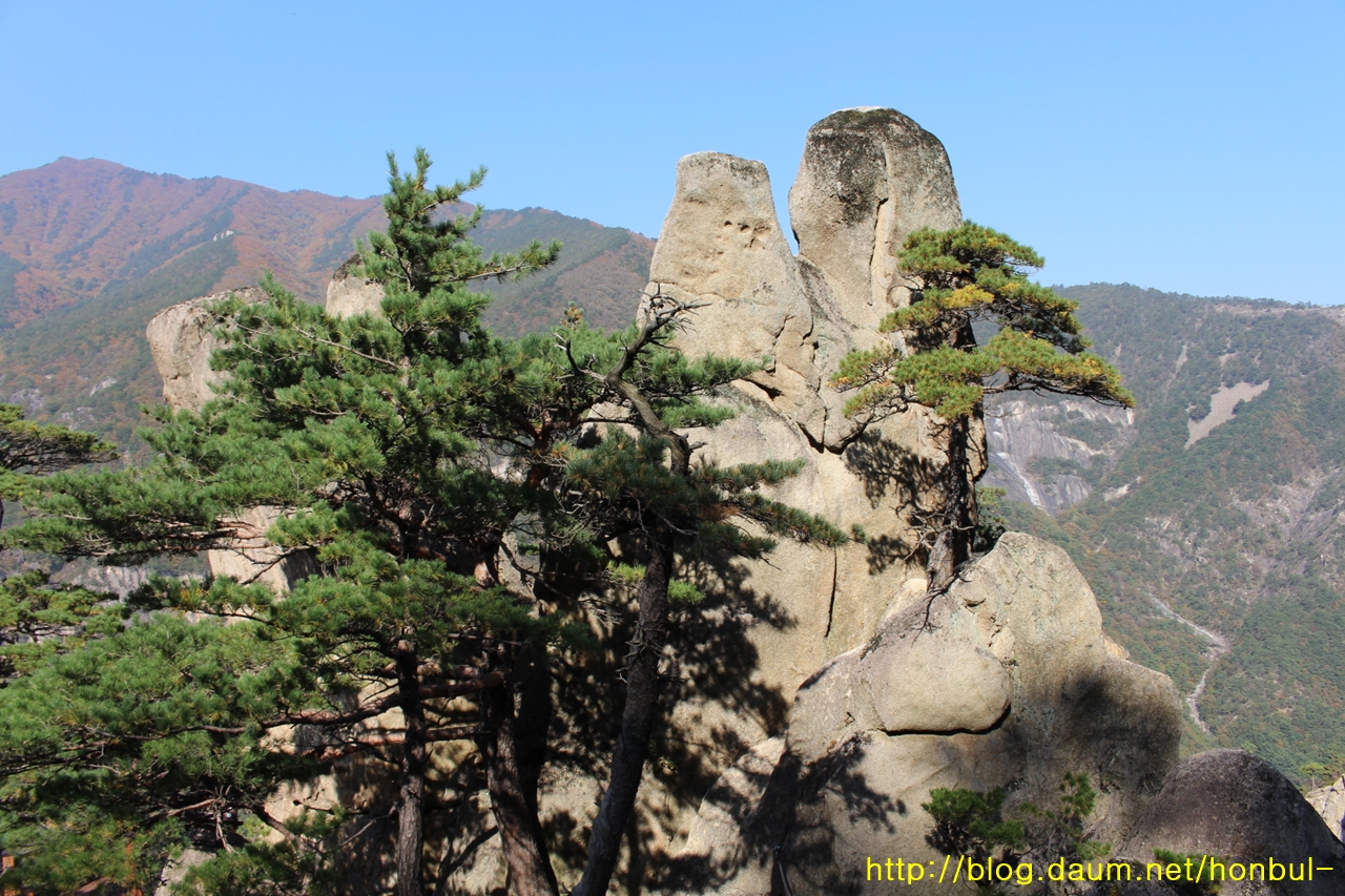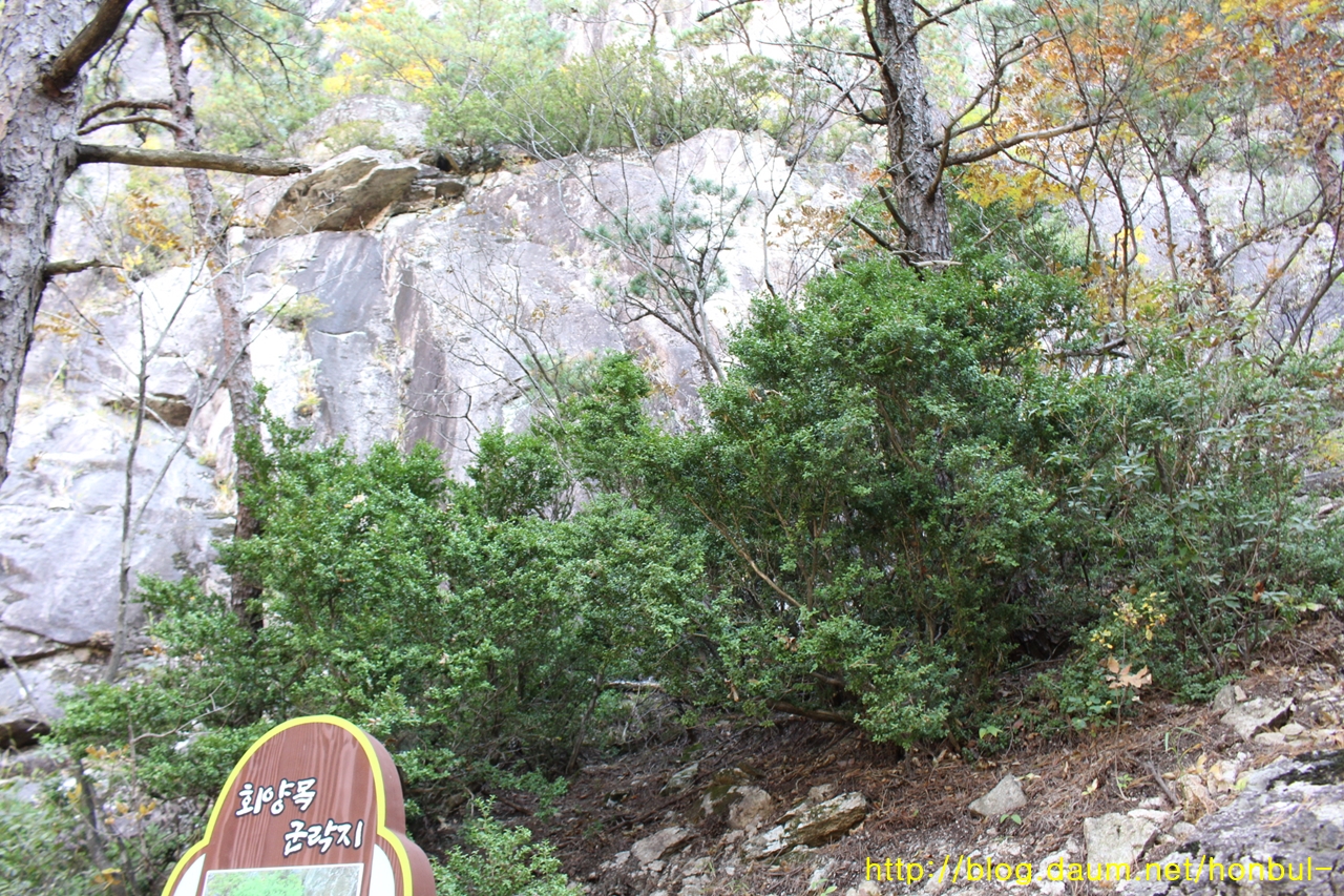 그 석간수보다 아래쪽 곰바위와 소나무, 두타산성이 더 좋다고 믿어 그쪽으로 발걸음을 옮긴다.
