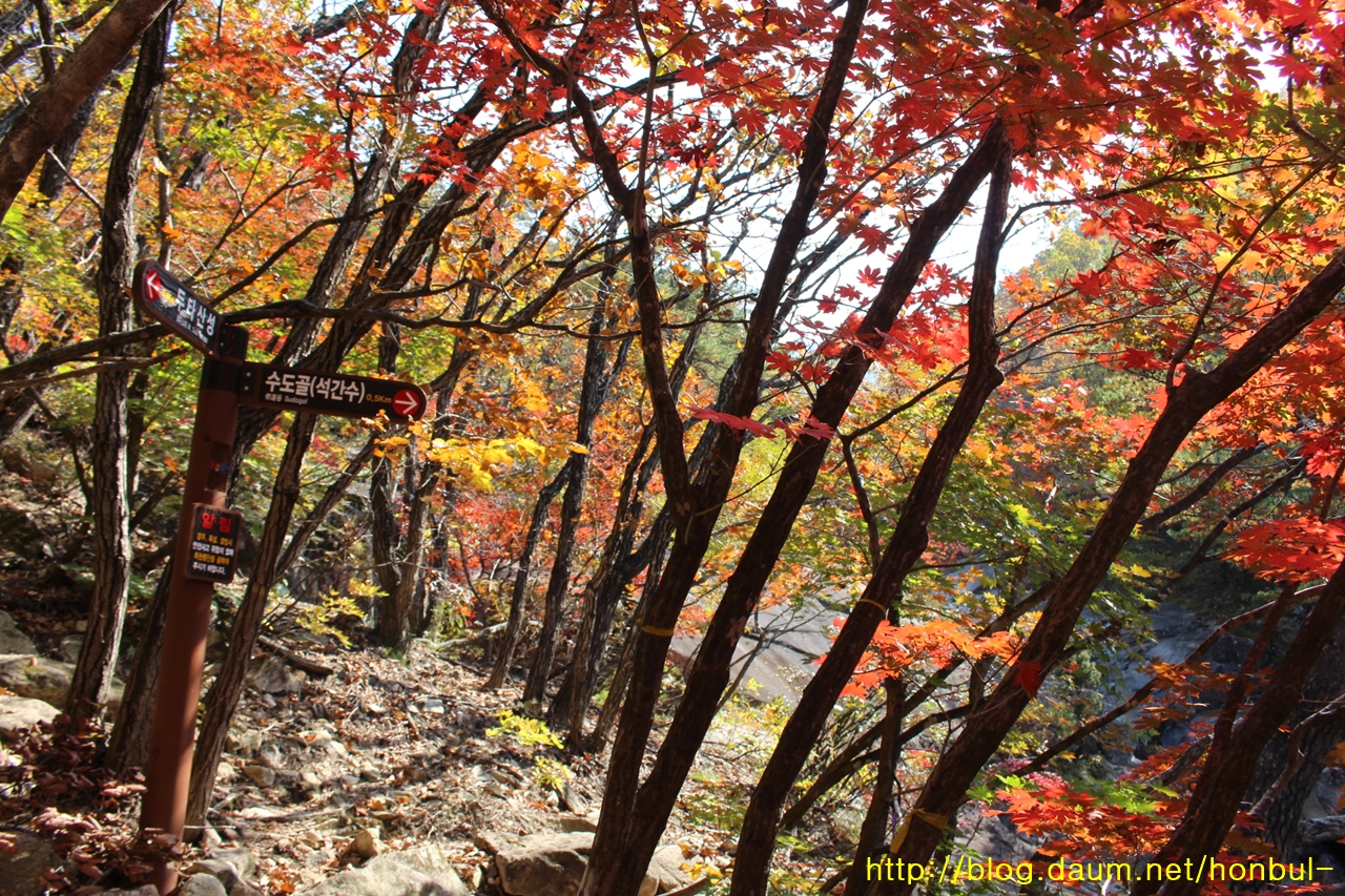 두타산성을 내려가 쌍폭포와 용추폭포를 보고 신선봉 가는 길에 관음사로 가는 이정표를 봤다.