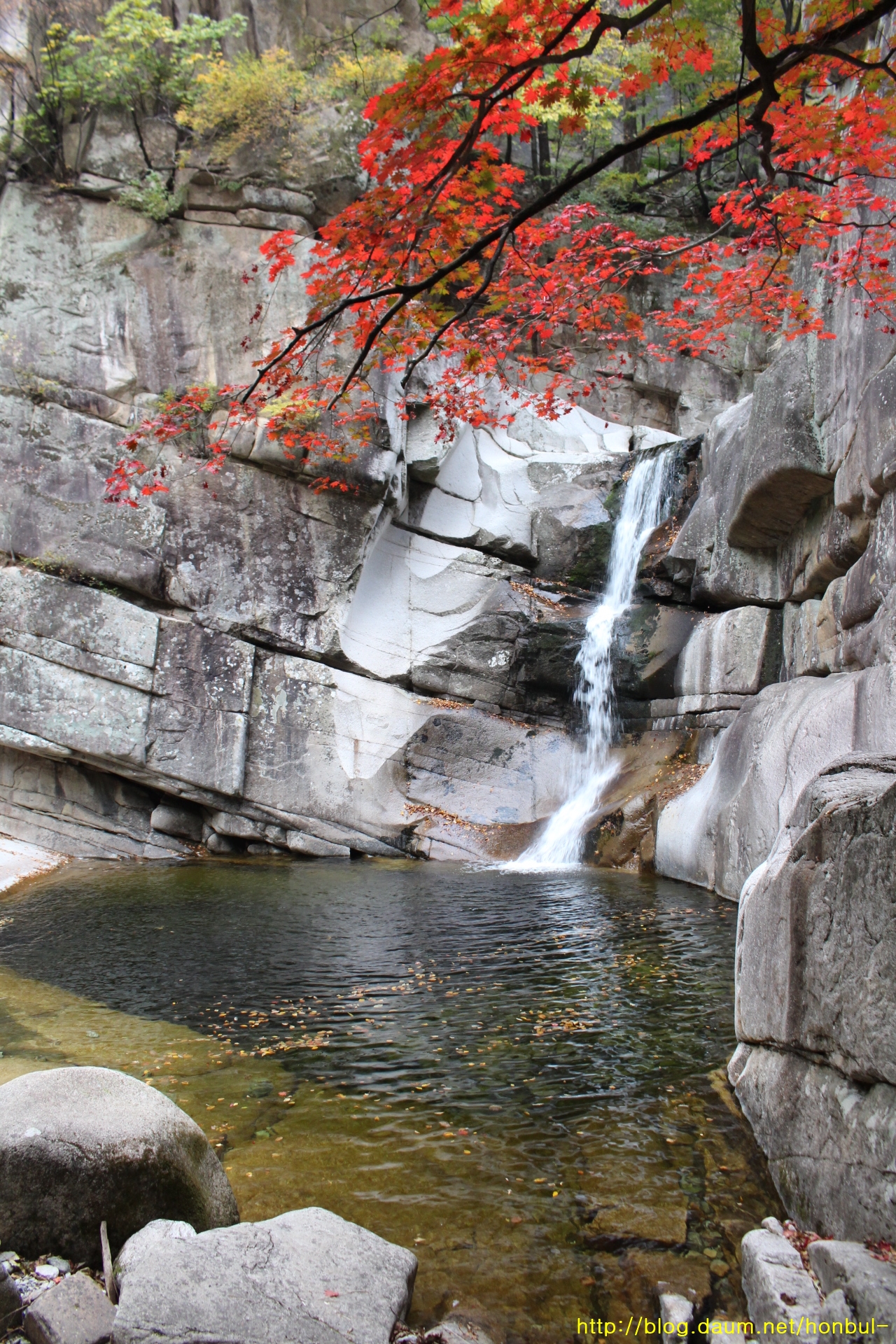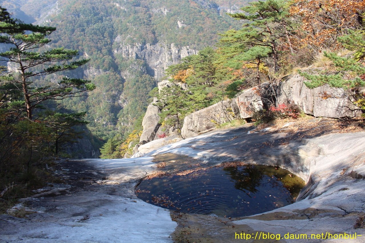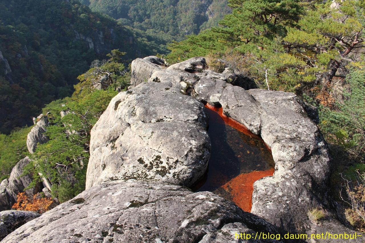 바위가 철분이 많은지 물이 담긴 곳에 붉은 녹이 가득하고 안쪽엔 낙엽이 쌓여 범상치 않은 기운을 풍긴다.