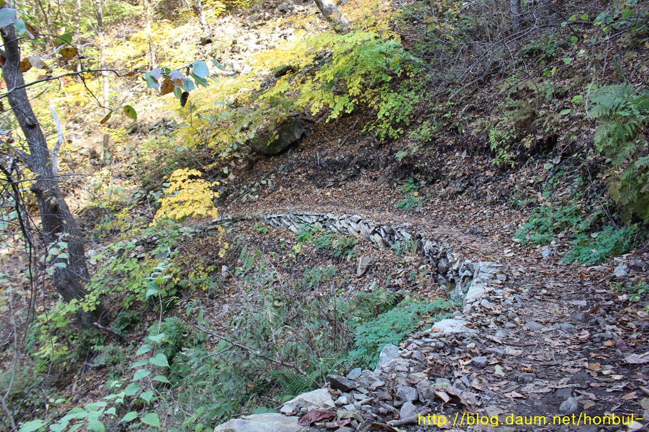 새로 난 길을 따라 오르다가 아무래도 위험구간은 그냥 통과할지도 모른다는 생각에 다시 내려간다.