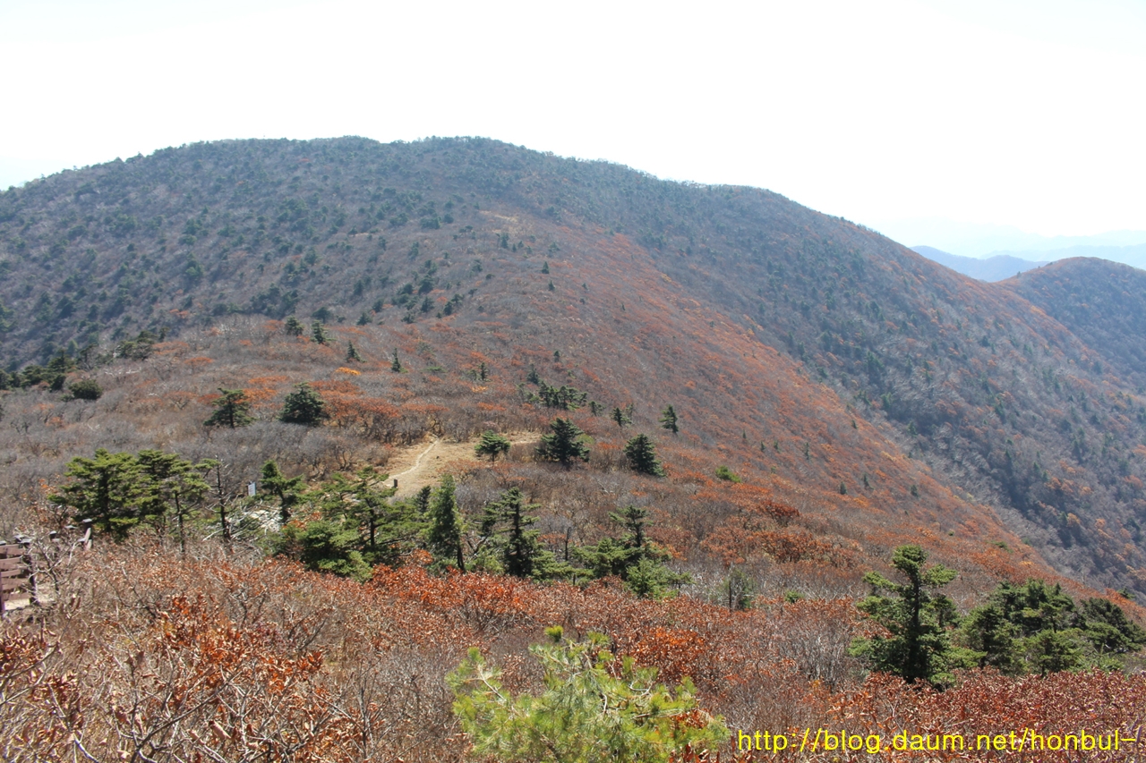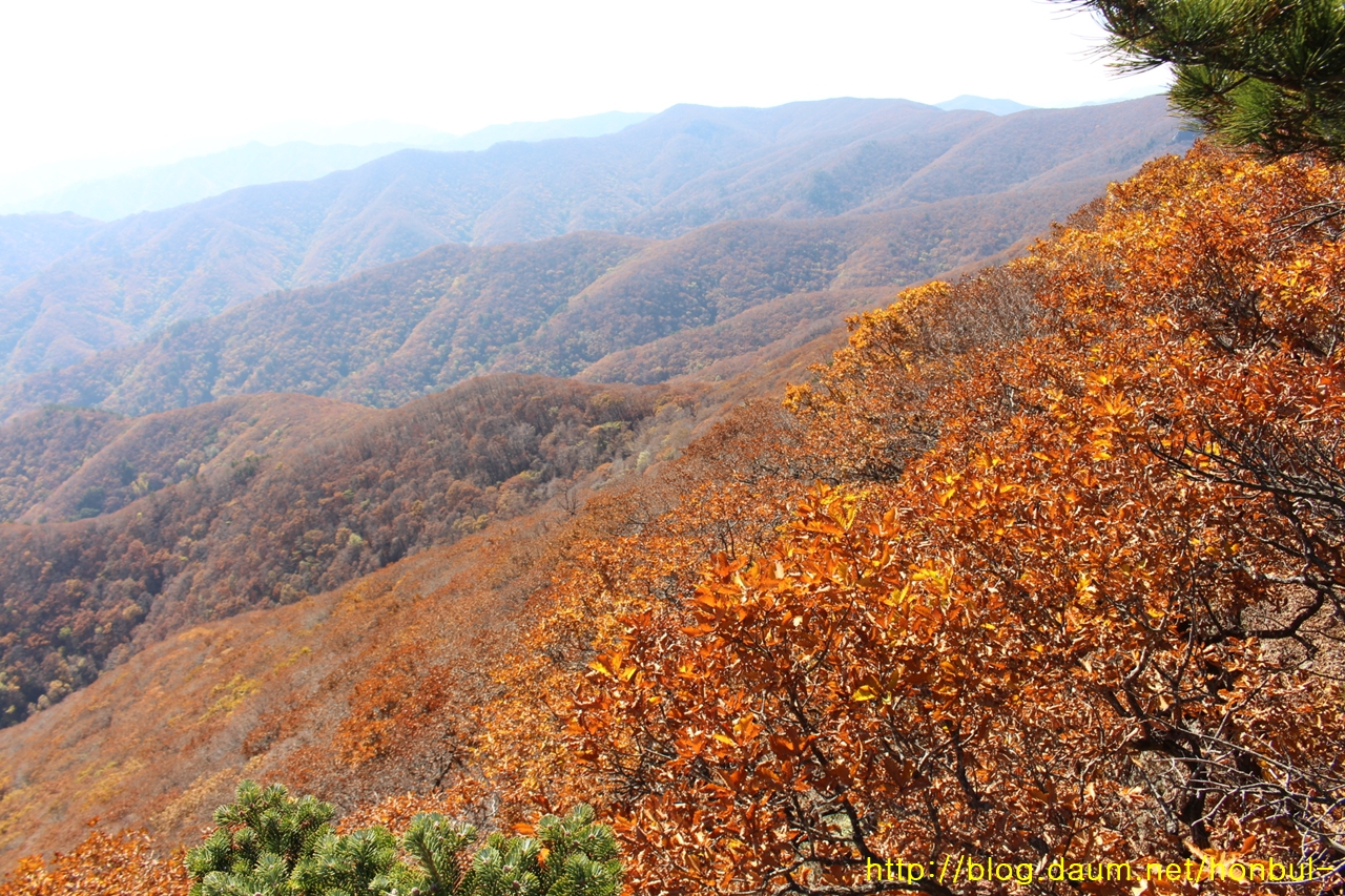 고도가 좀 높아지자 참나무 단풍이 보인다.