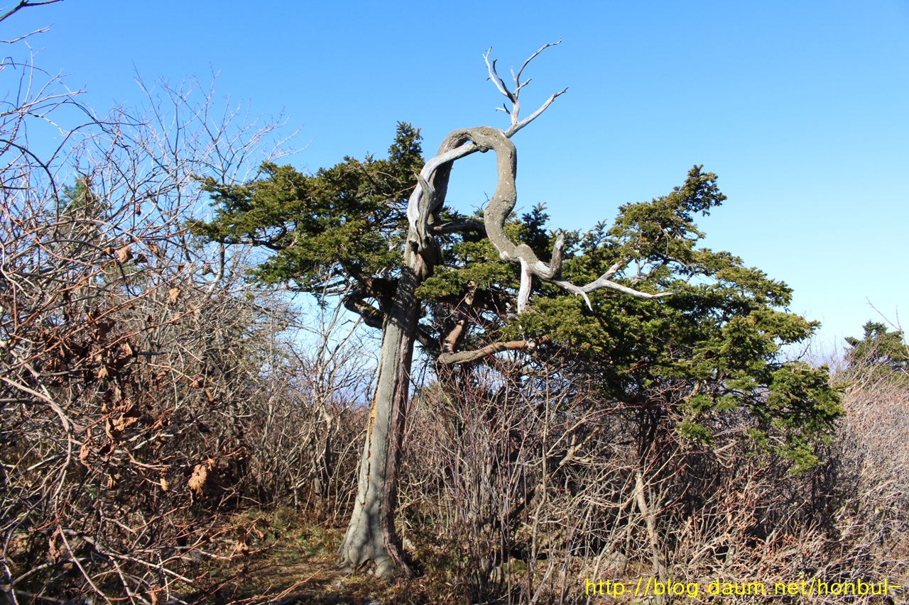 며칠 전 오대산의 주목은 반듯하게 크기만 해 주목나무 다운 예술적 흥취는 없었다.