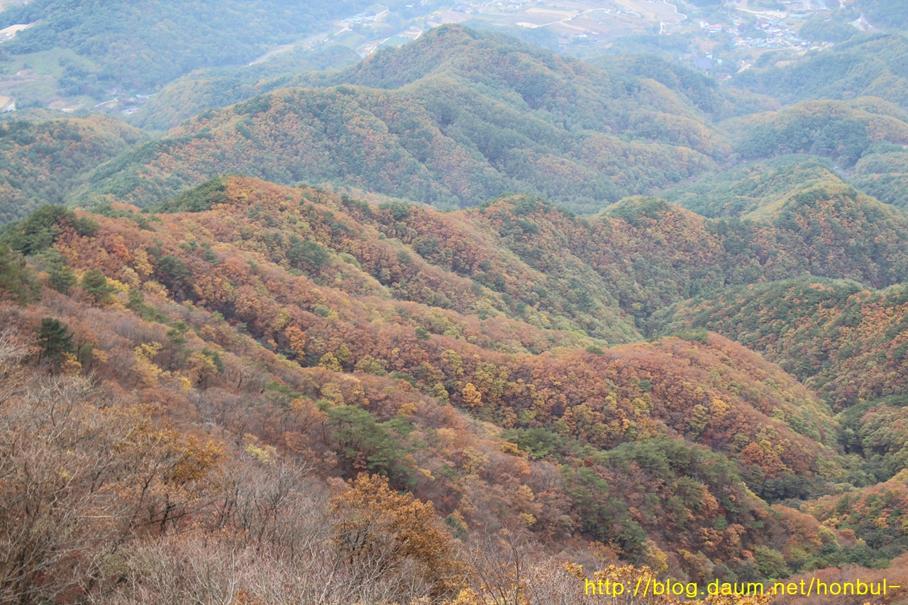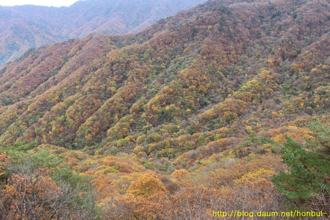 사다리병창을 지나 말등바위 전망대에서 보는 주변의 단풍이다.