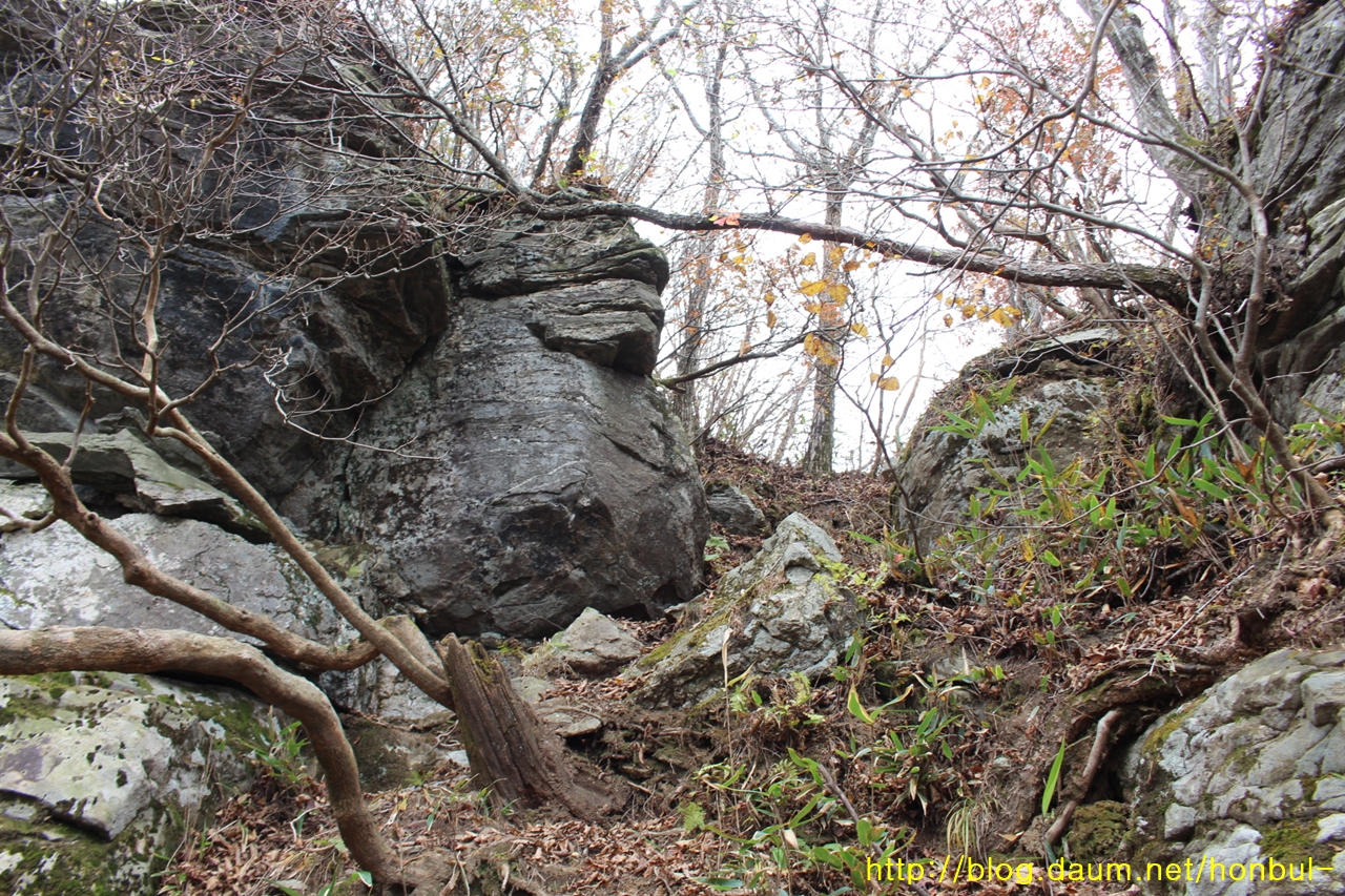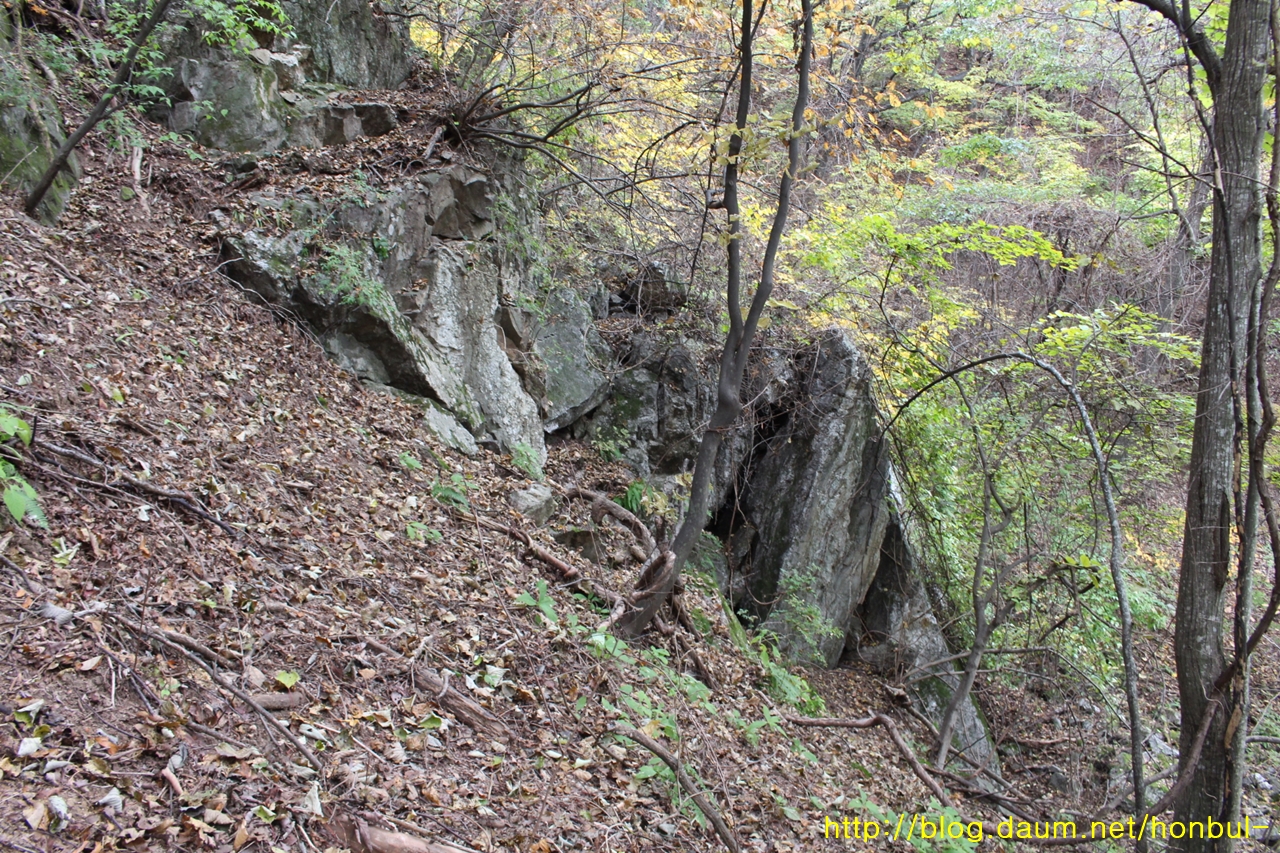 3봉 내려가는 구간에서 잠시 길을 찾아 헤매다 다닌 흔적이 보이는 이곳으로 내려선다.