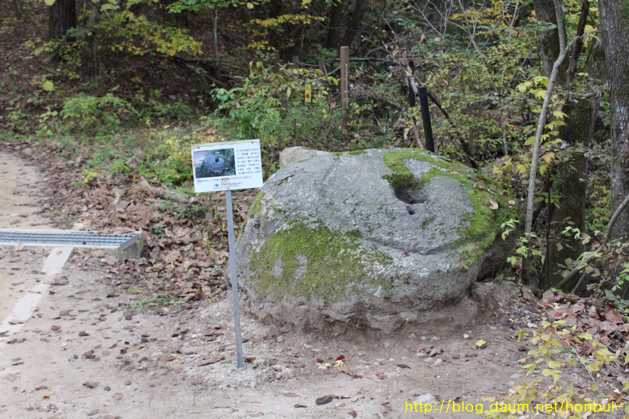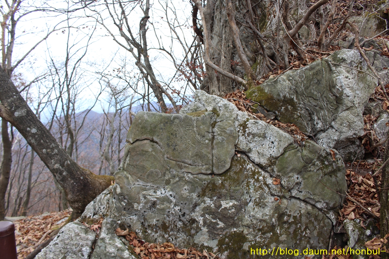 신흥 주차장 들어서기 전 황장금표(黃腸禁標)를 새긴 바위 사진을 찍는데,