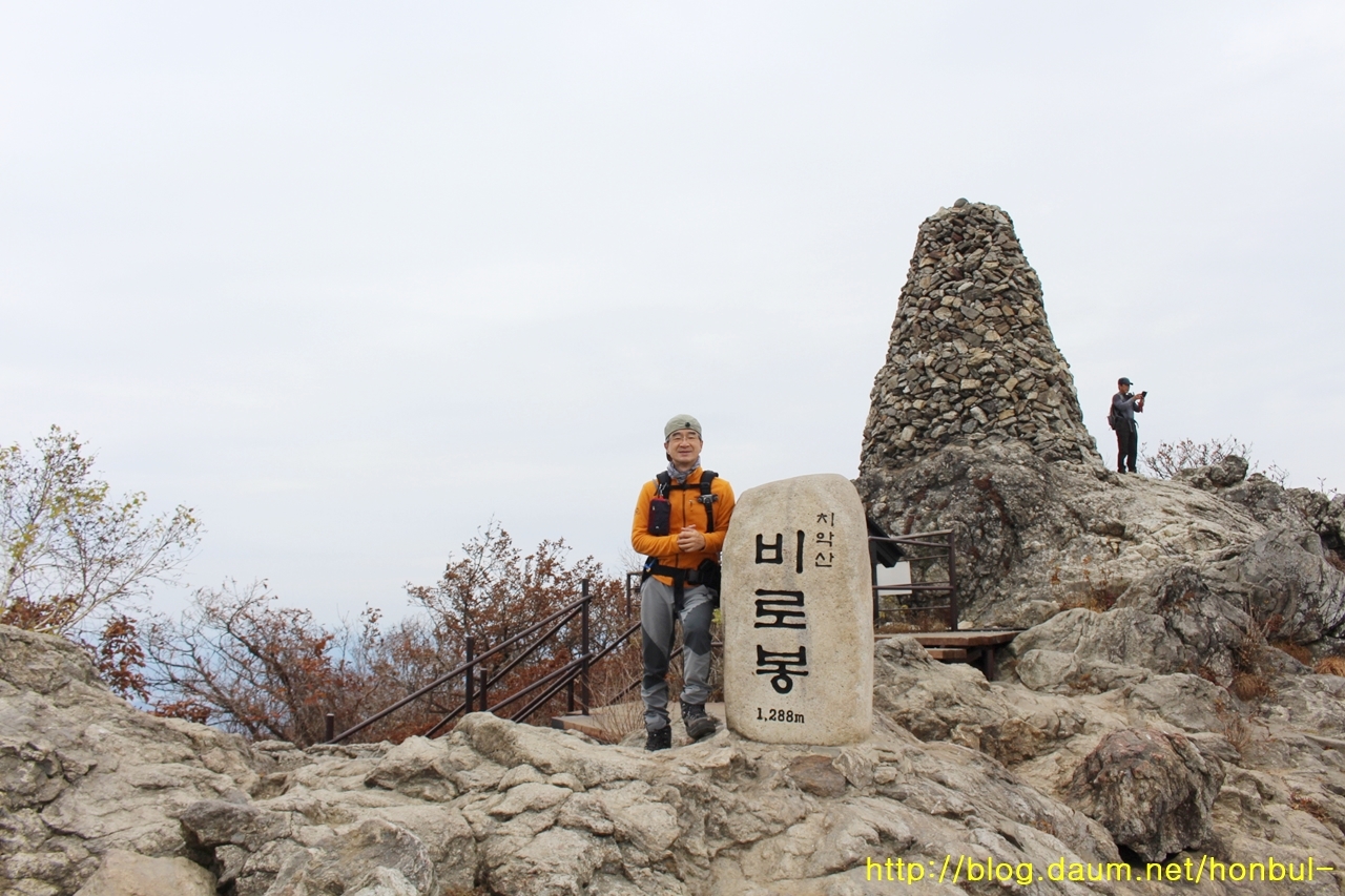 드디어 3시간 18분 만에 6.1km 지점에 있는 치악산 정상인 비로봉에 도착했다.