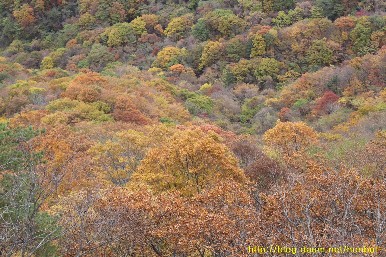 지금은 높은 곳에 단풍이 잘 피었고 낮은 곳은 여전히 푸른색 일색이다.