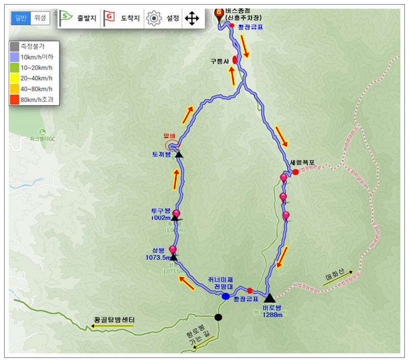 2020.10.21. (수) 06:47~15:03(8시간 18분 산행, 1시간 휴식, 전체 거리 14.3km, 평속 1.9km/h) 흐림