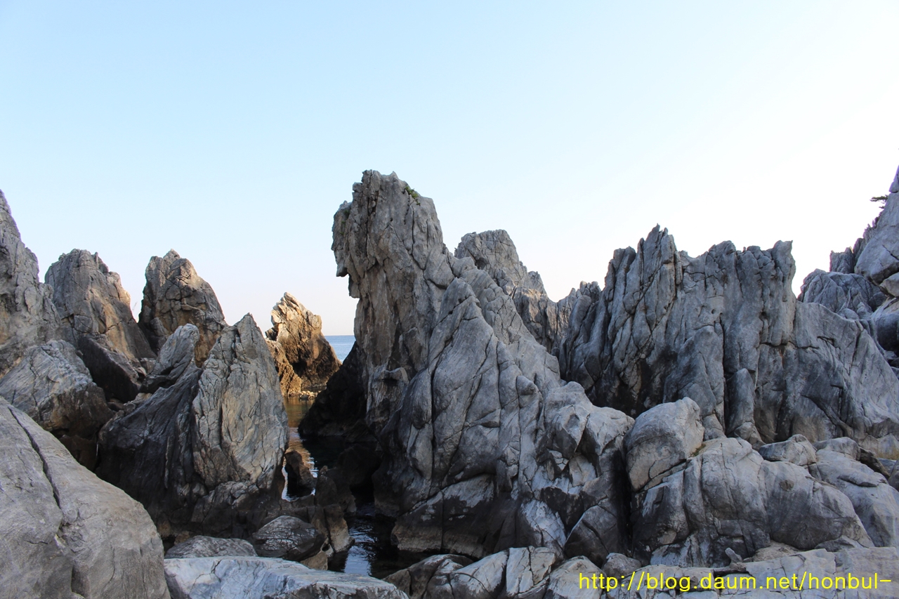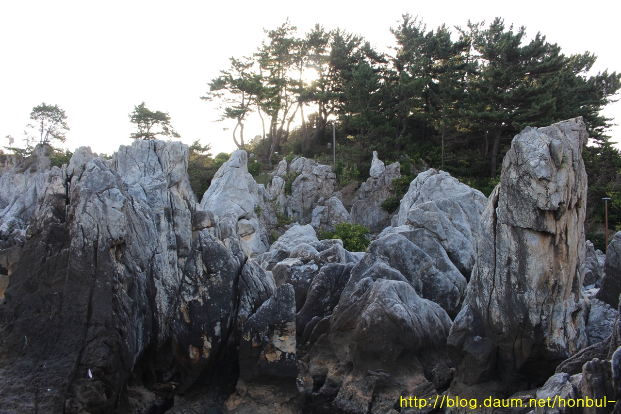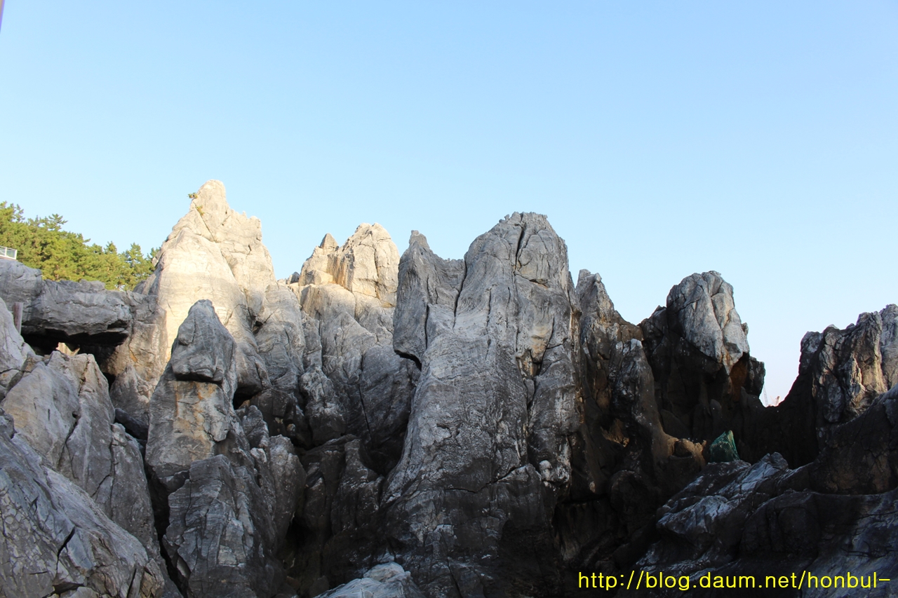 동해 추암 일대의 능파대는 태양이 머리 위에 떴을 때 보는 게 좋다.