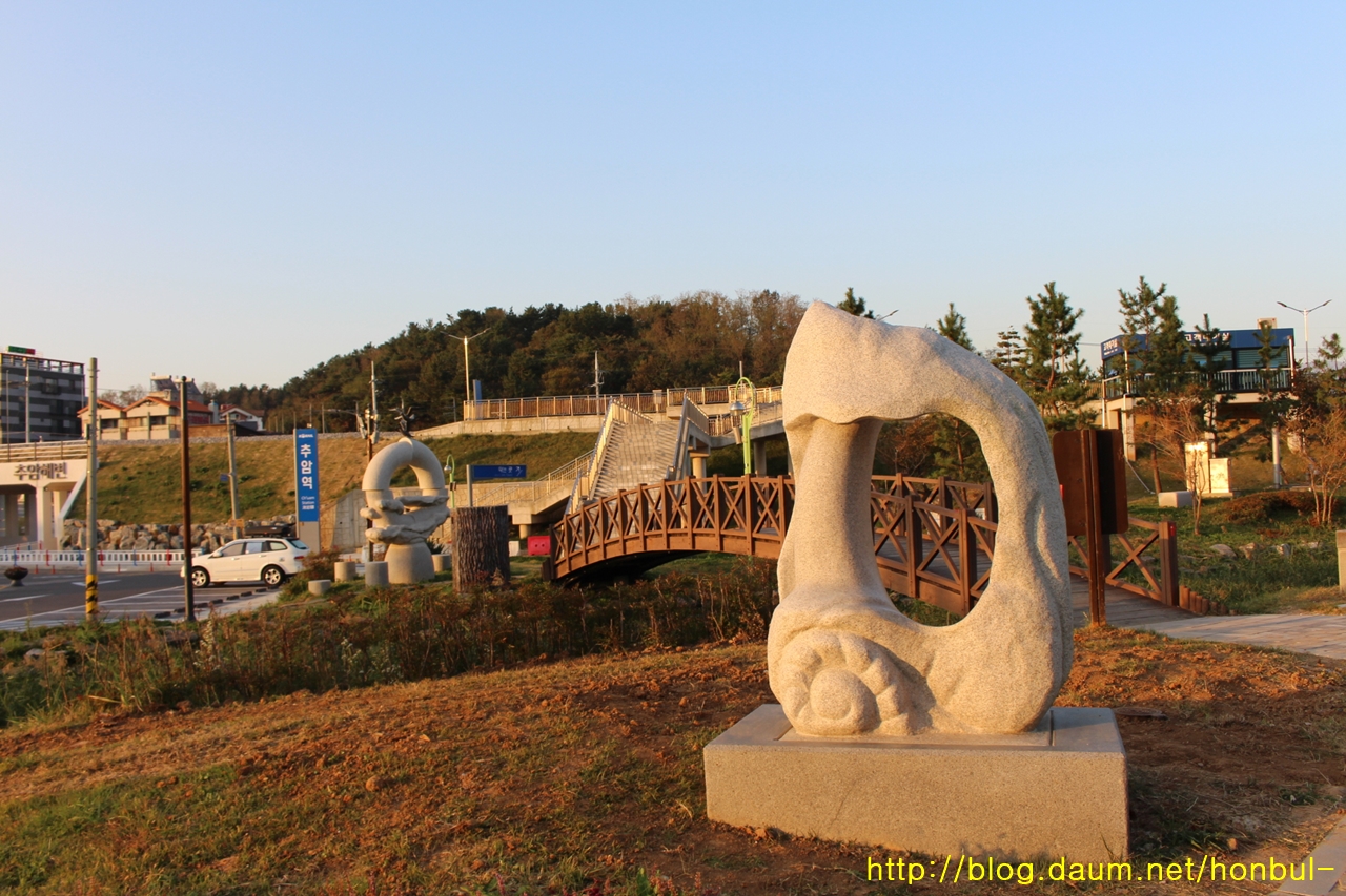 잠깐 바위를 오르내리다 보니 바닷바람과 추위를 감안해 입은 덧옷을 차에 두고, 먼저 추암 조각공원부터 찾는다.