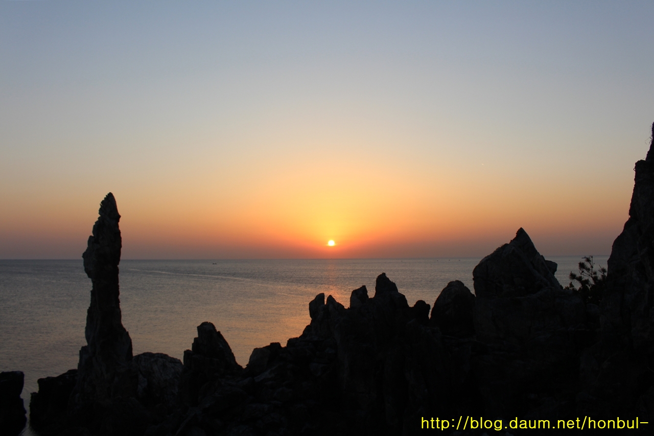 촛대바위 보다 옆에 있는 형제바위 사이로 솟는 일출 풍경이 더 멋지다.