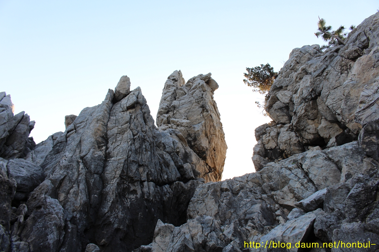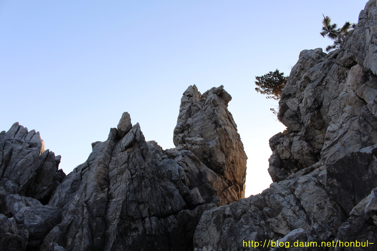 촛대처럼 기이하고 절묘하게 하늘을 찌를 듯이 솟아있는 이 바위를 "촛대바위 "라고 부른다.