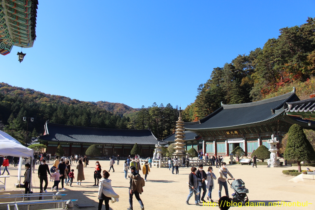 산행 끝내고 오대산 주차장 밖 수 km에 걸친 노상 주차지역을 겨우 빠져나와 어렵게 월정사에 도착했다.