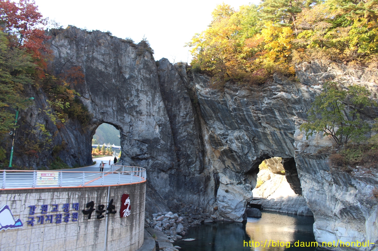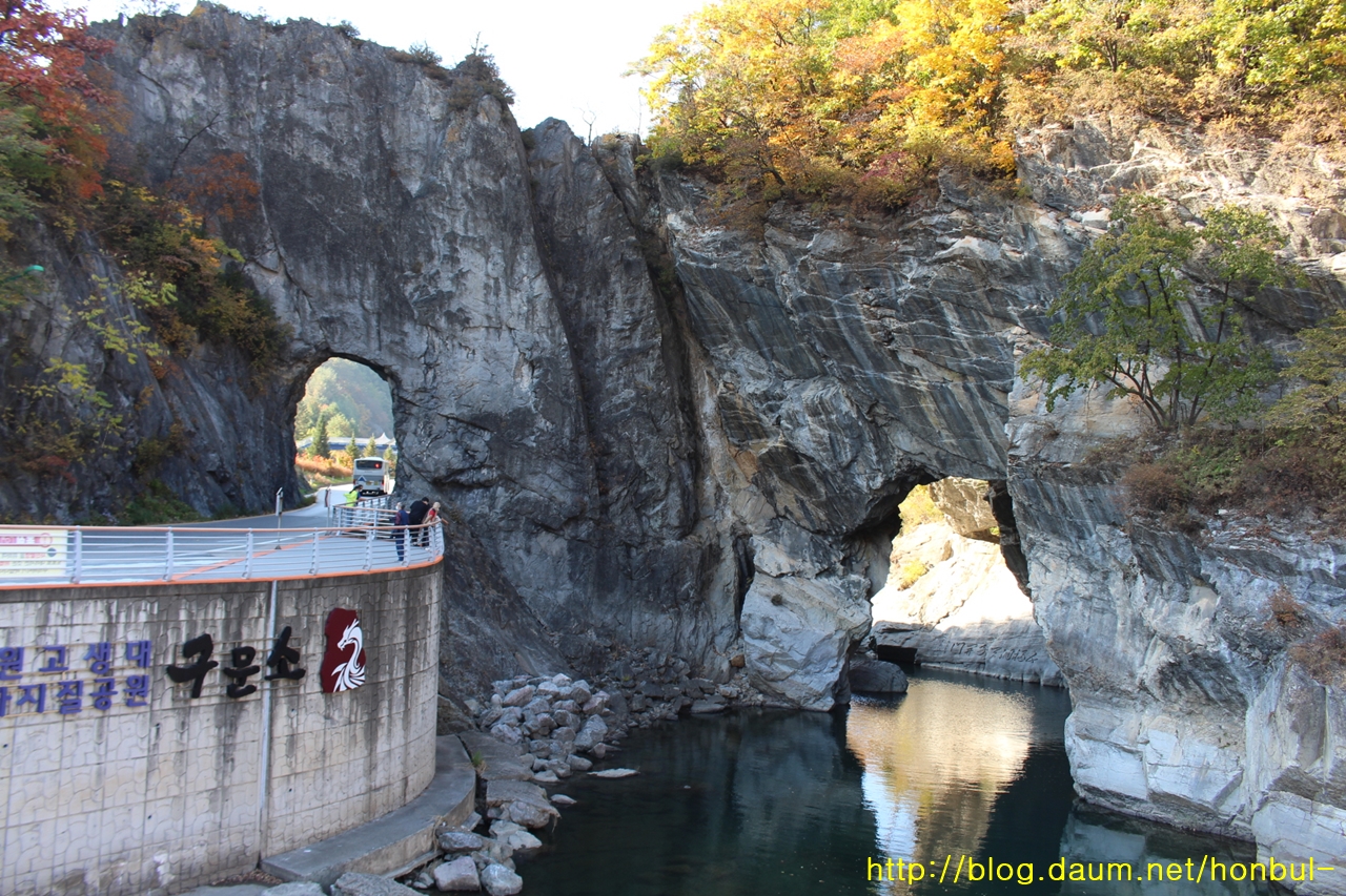 동점 구문소의 구름다리처럼 생긴 구문소의 거대한 석굴(石窟),