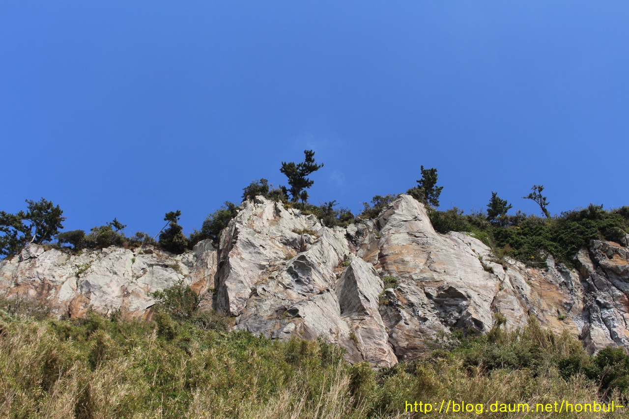 저 암봉이 굴러 떨어지며 해안에 큼직한 바위가 쌓였다.