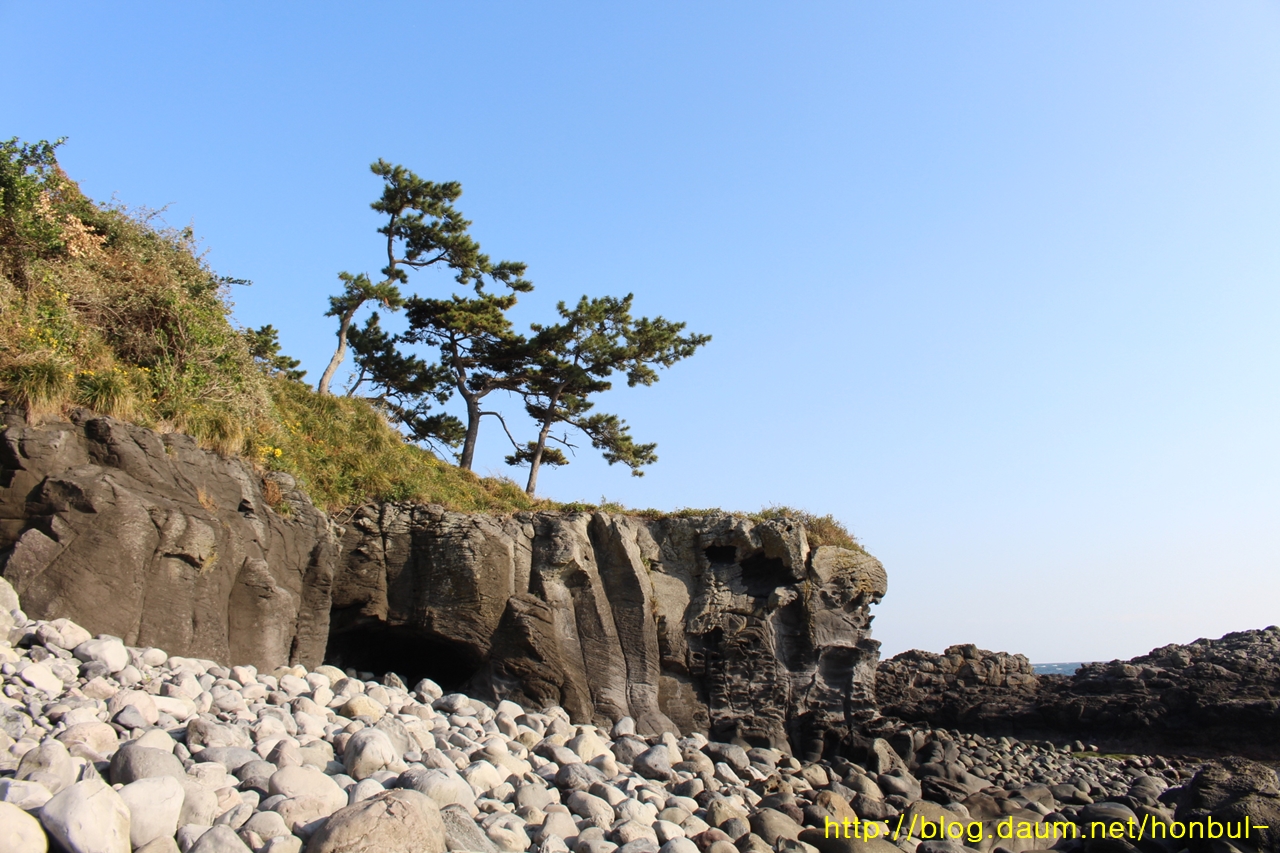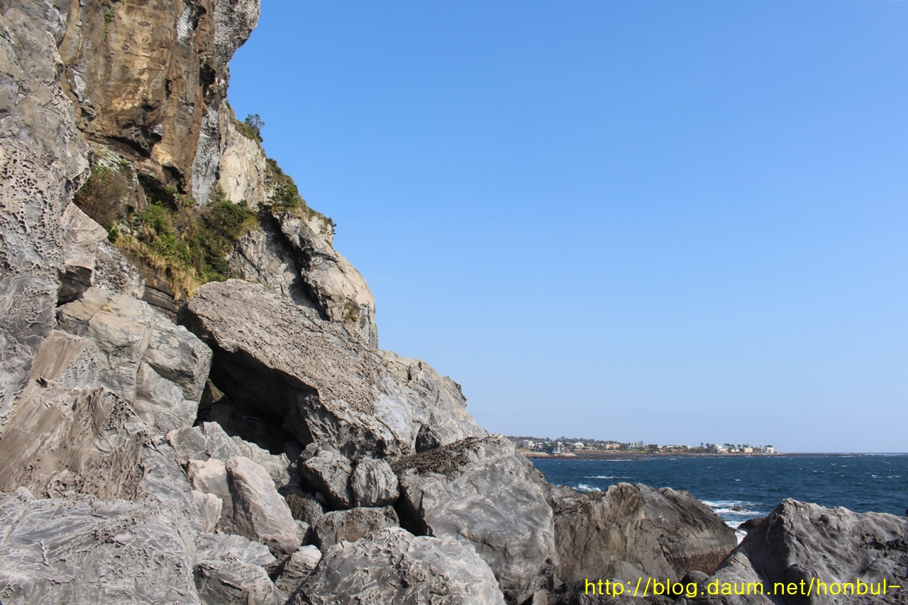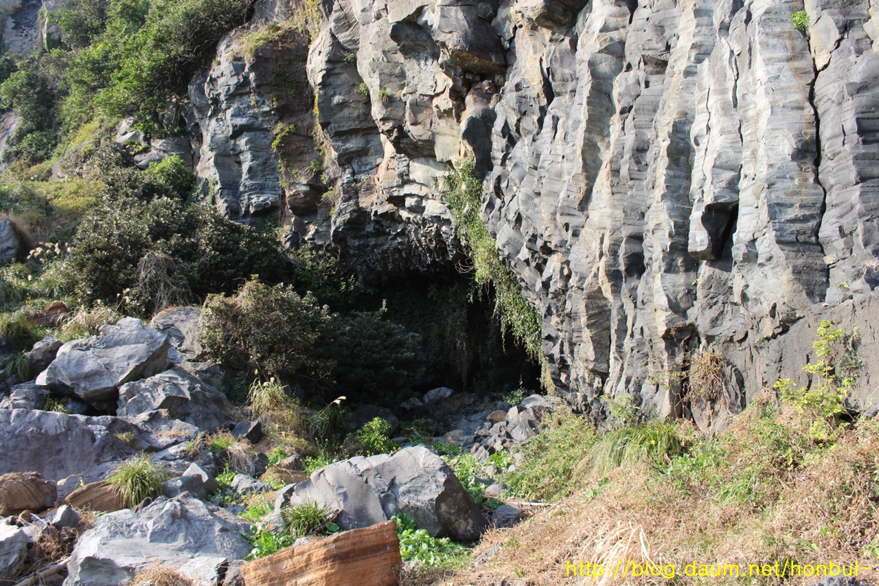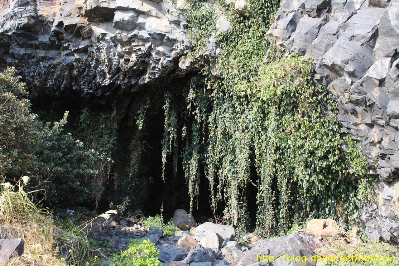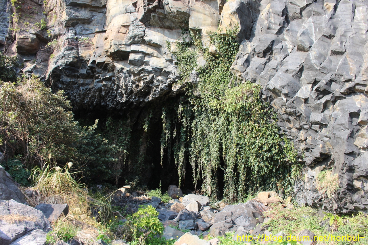 안덕계곡을 타고 내려오며 바닷가에 거의 도착할 때 좌측에 보였다.