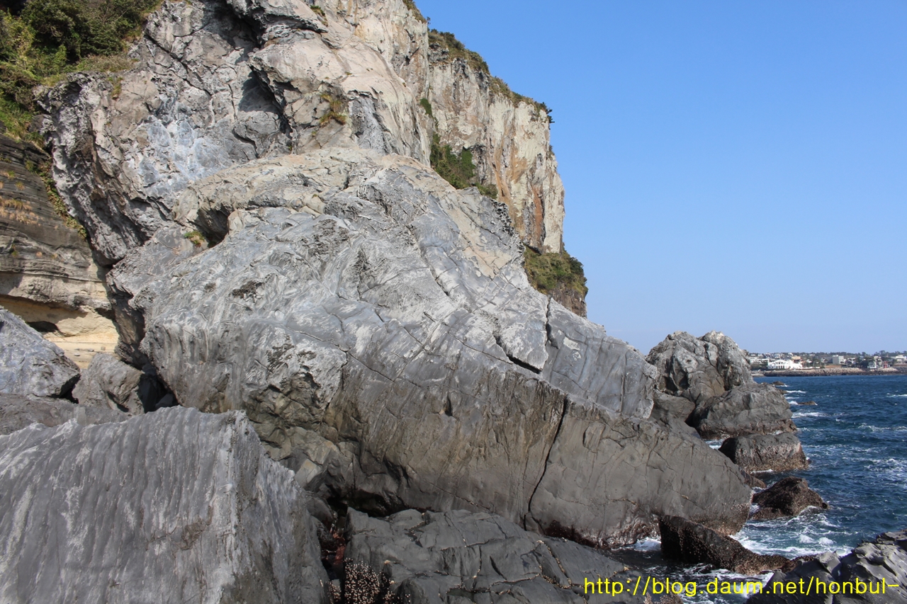 해안 절벽이 아무리 길어도 박수기정 단애의 특징은 이쪽 끝에서도 동일하게 나타난다.