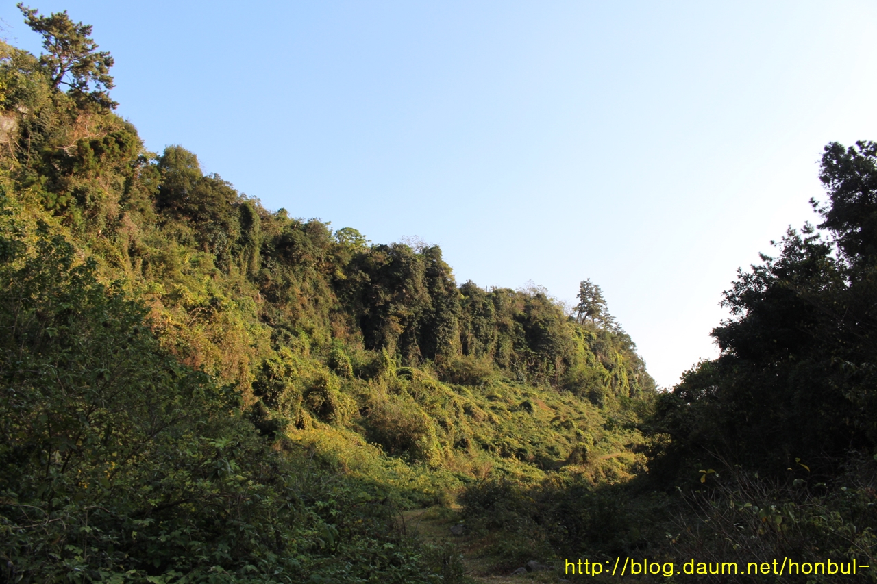 작은 개울을 가시덩굴을 헤쳐가며 겨우 탈출해 건너편 길로 오른다.