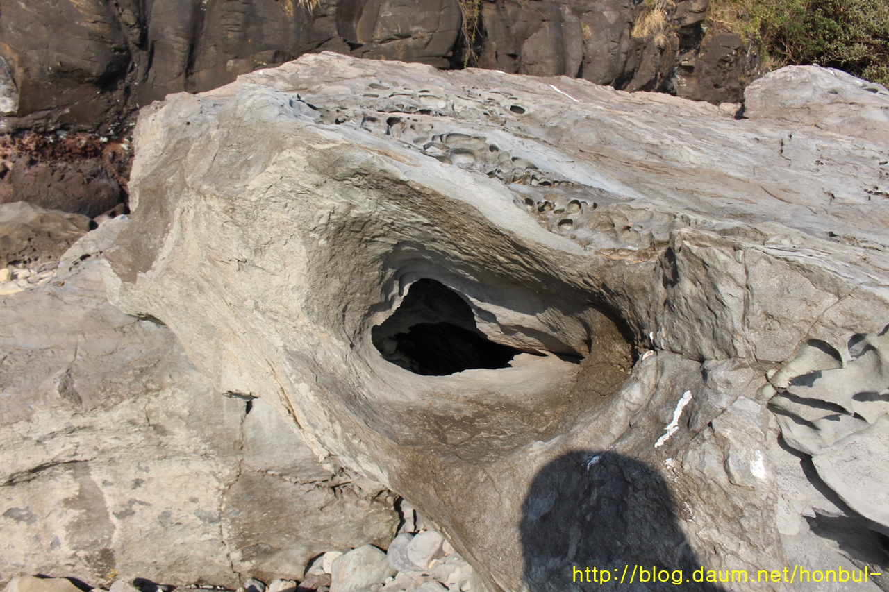 이 바위의 구멍이 재미있게 생겼다.
