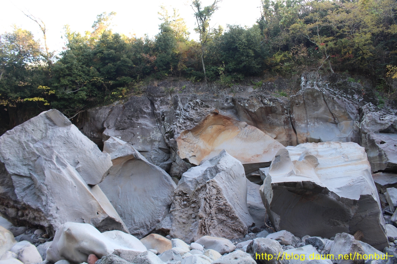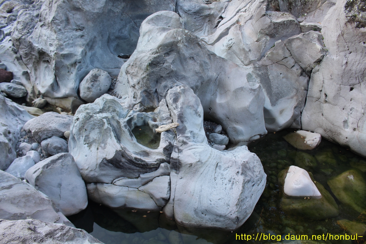 이런 바위가 한 군데로 모아진 걸 보면 물살의 위력이 짐작된다.