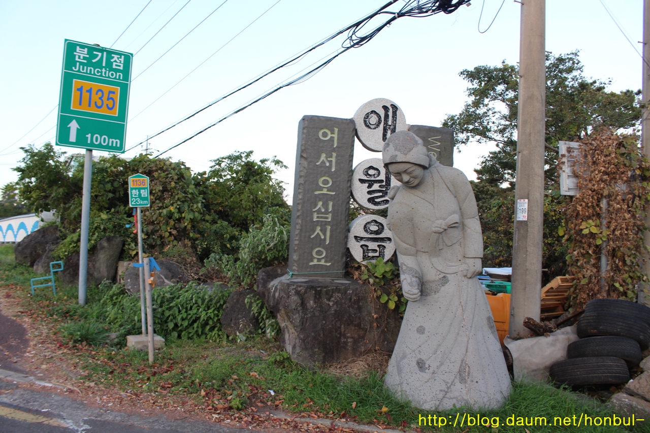 다리를 건너니 애월읍을 안내하는 표지판이 보인다.