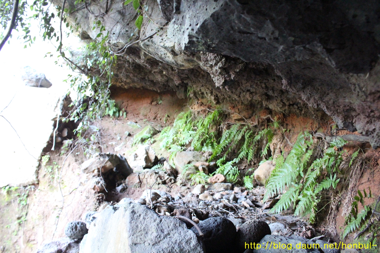 포기하고 내려오려는데, 천장의 현무암 바위가 오돌토돌한 게 거칠어 손에 잡기 좋다.