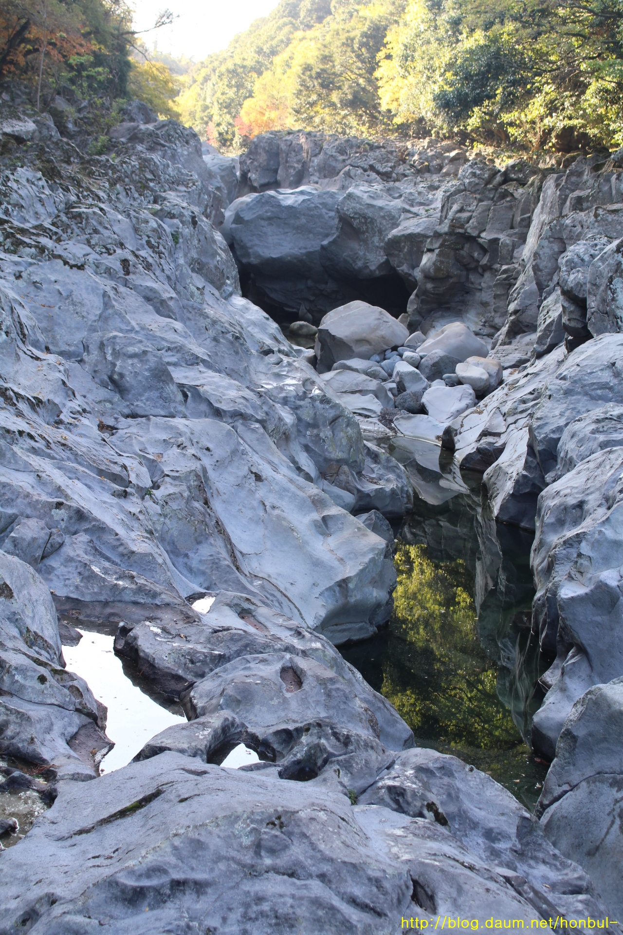 계곡 깊은 곳으로 물이 고여 있다.