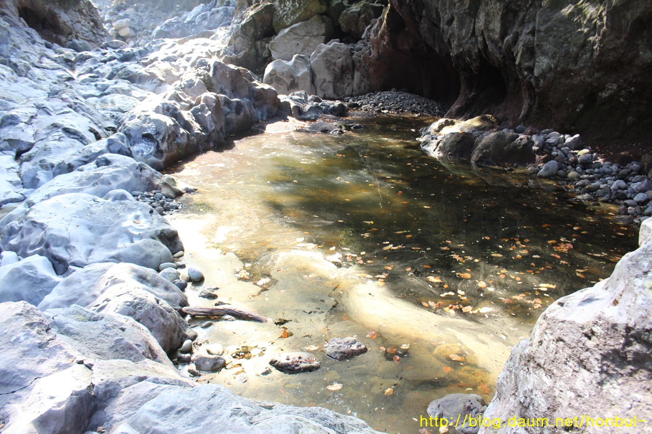바닥도 모두 용암 암반이기에 물이 증발되고도 이만큼 남았다.