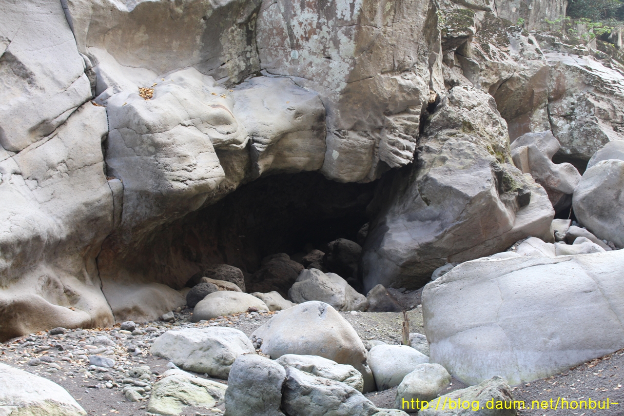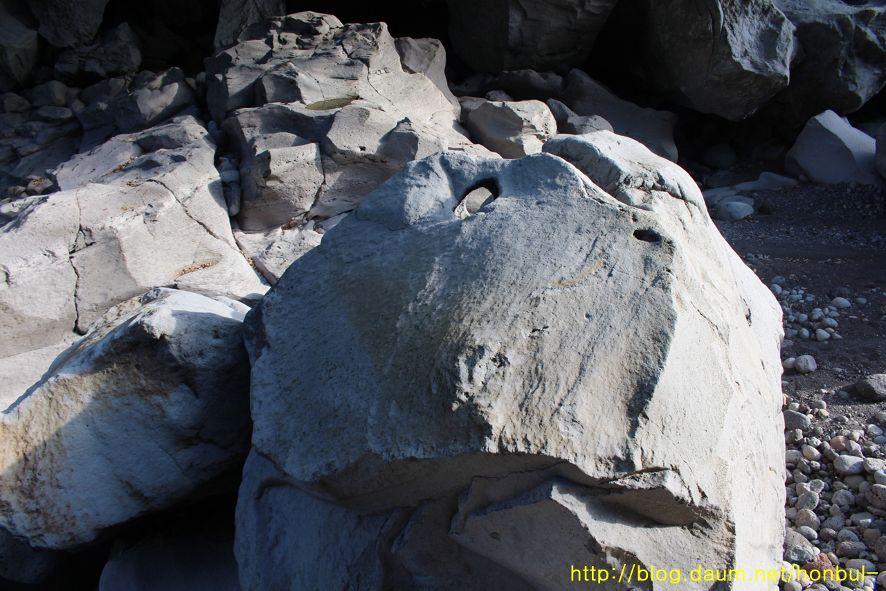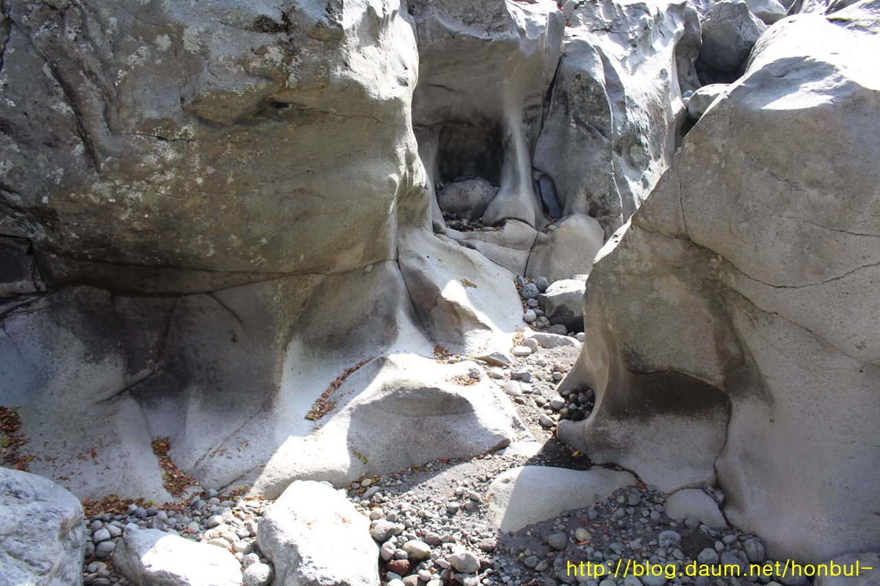 물살이 세면 용암 밑을 후벼 파 구멍을 남기며 떠난다.
